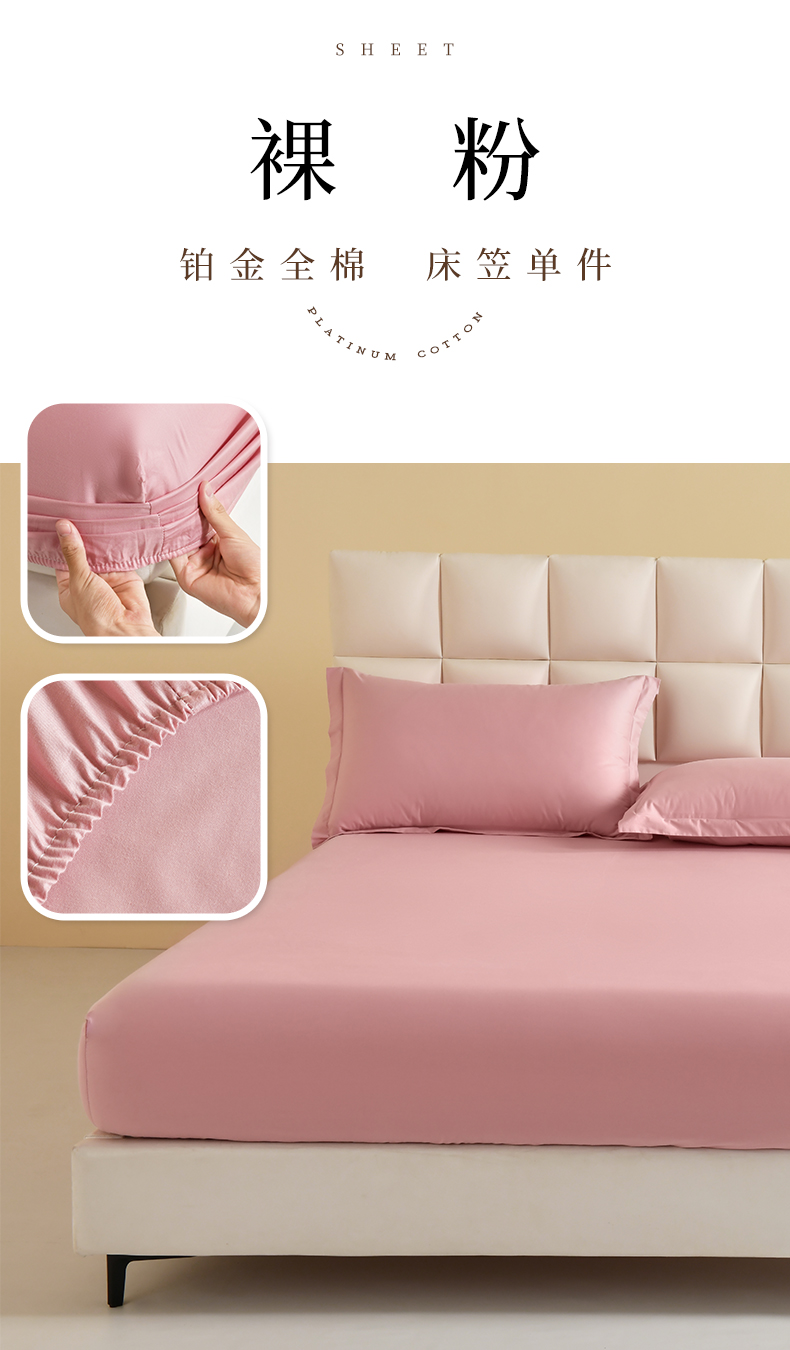 • 91家纺网 家纺一手货源 找家纺 元元被芯 2025款纯色全丝光-全精梳高密纺-铂金A类全棉单床笠 裸粉