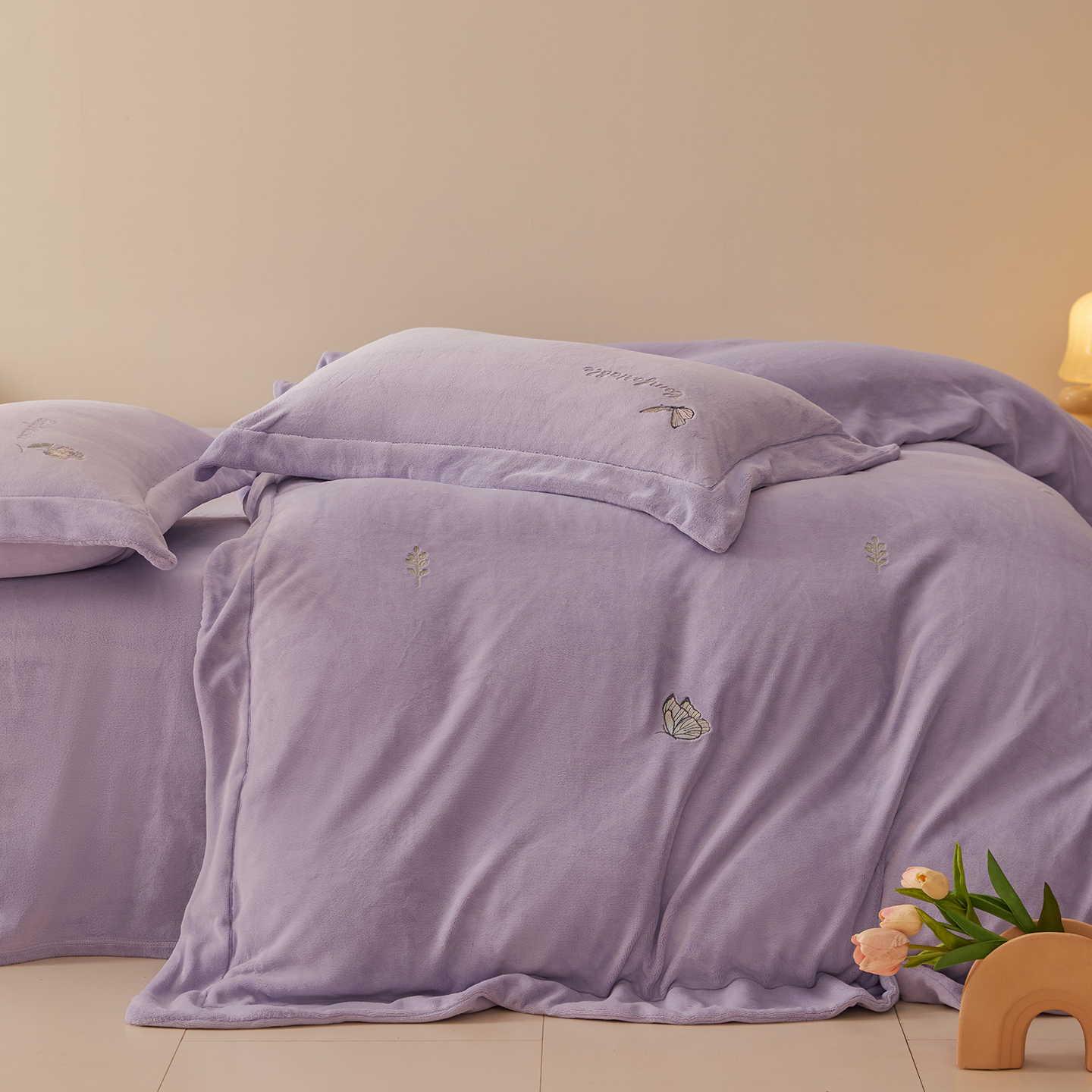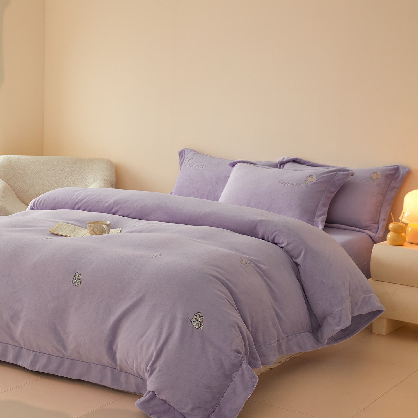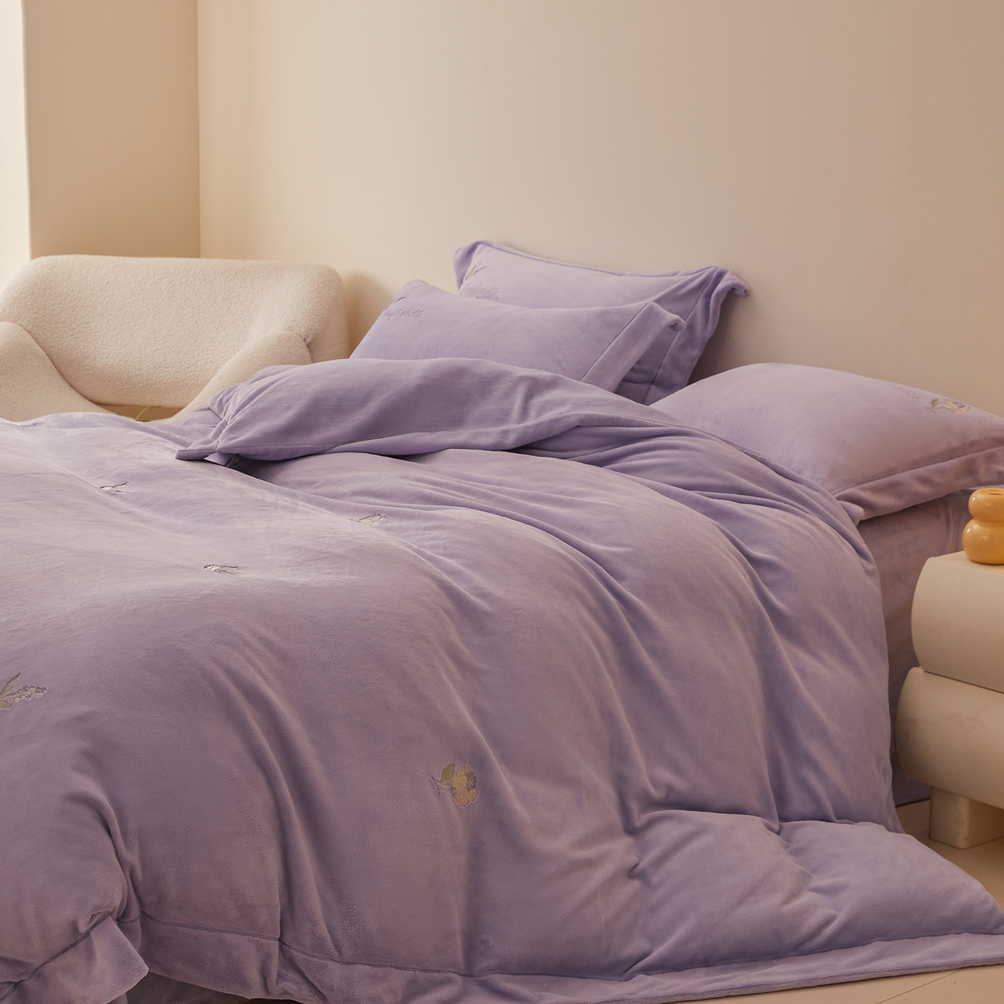 新方向 2025新款全消光A类刺绣牛奶绒四件套-悦动 悦动-莫奈紫