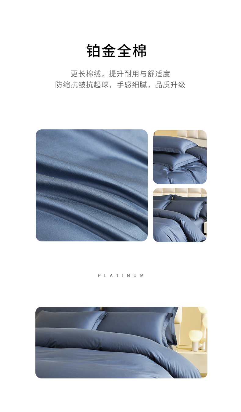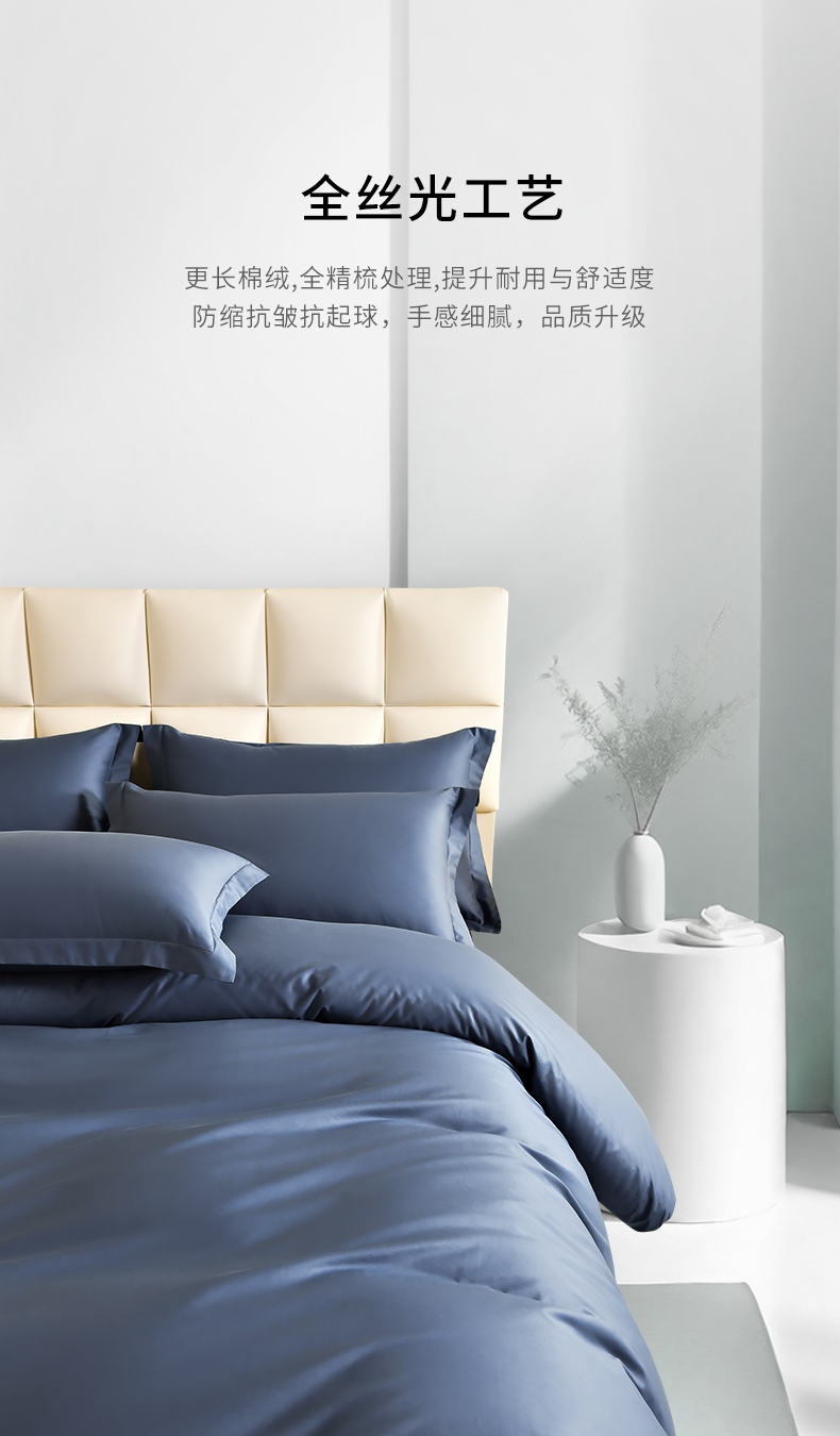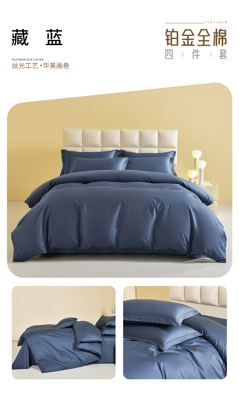 当前位置: 91家纺网 > 商品网购 > 床品套件 > 四件套 > 全棉活性四件套 > 元元被芯 2025款纯色全丝光-全精梳高密纺-铂金A类全棉四件套 藏蓝