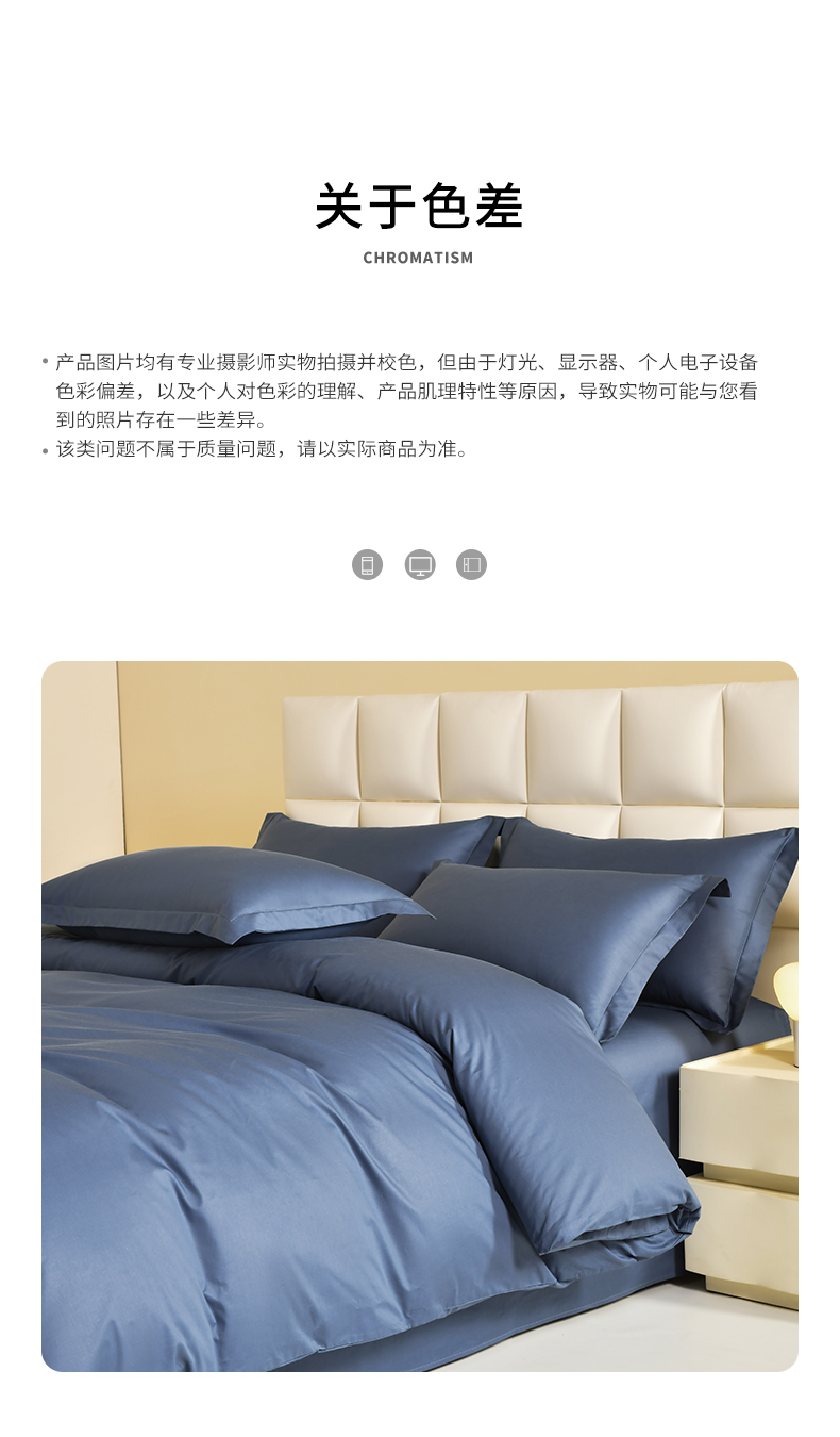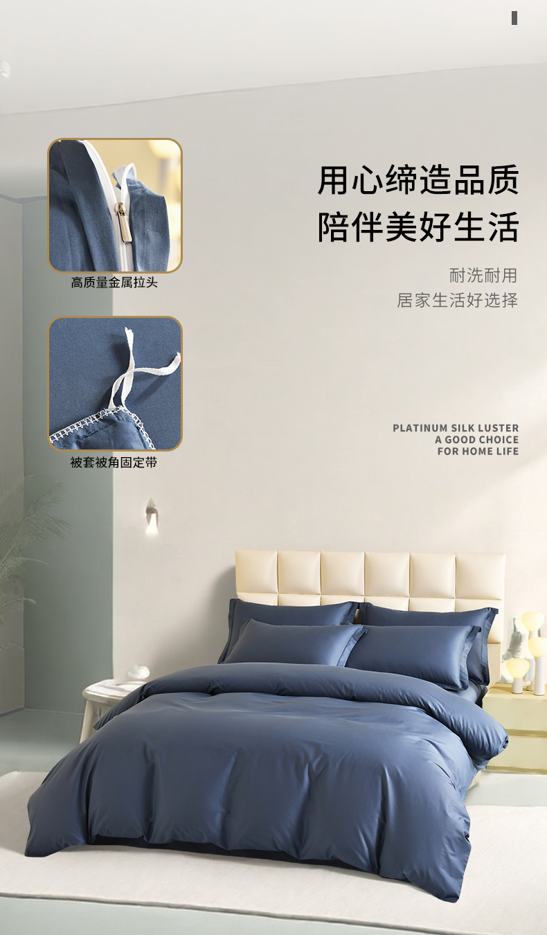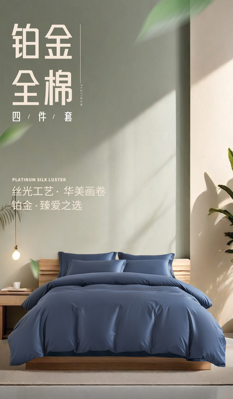 当前位置: 91家纺网 > 商品网购 > 床品套件 > 四件套 > 全棉活性四件套 > 元元被芯 2025款纯色全丝光-全精梳高密纺-铂金A类全棉四件套 藏蓝