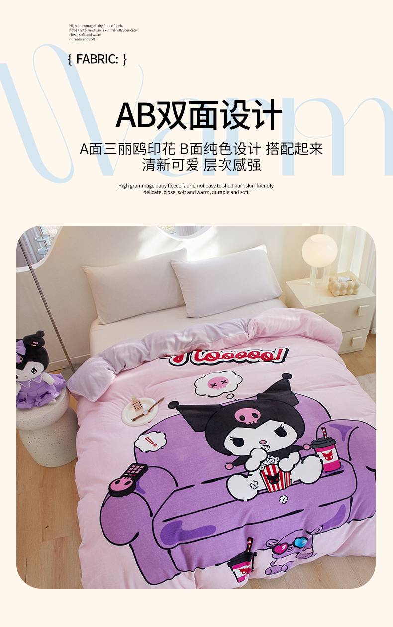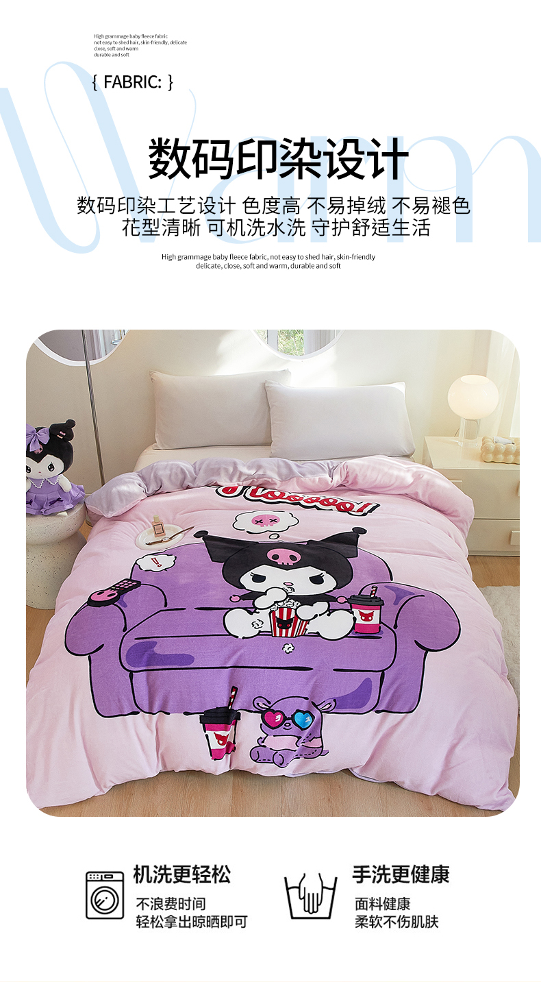 蘭菲家纺 2024新款牛奶绒卡通三丽鸥单品被套 星期天