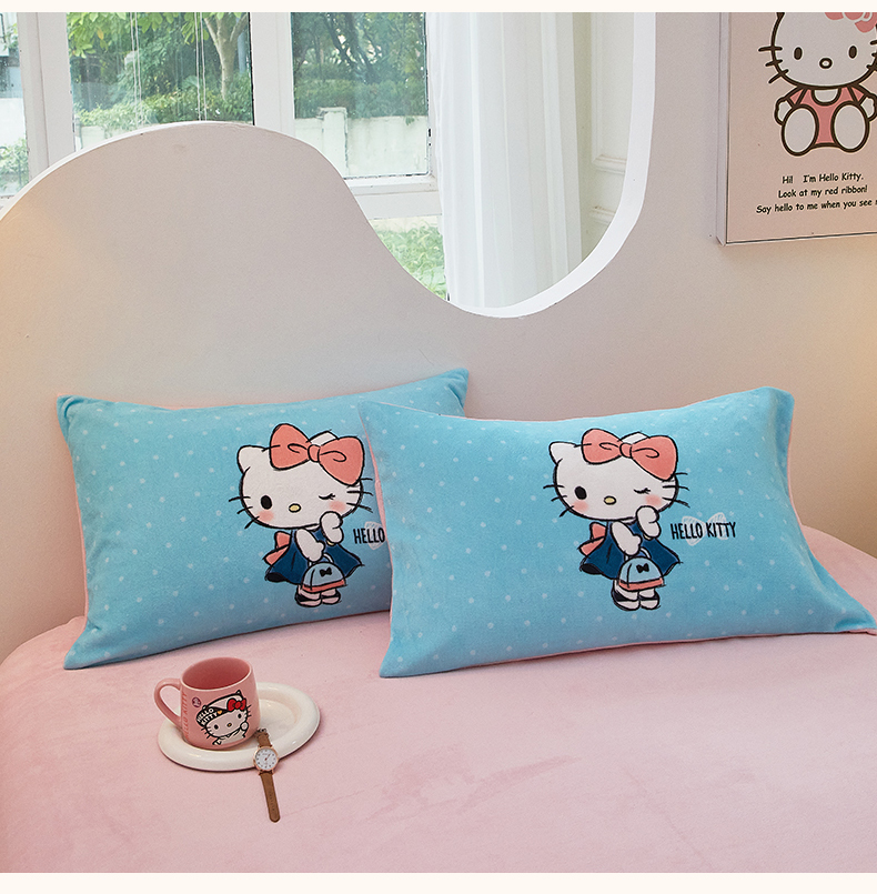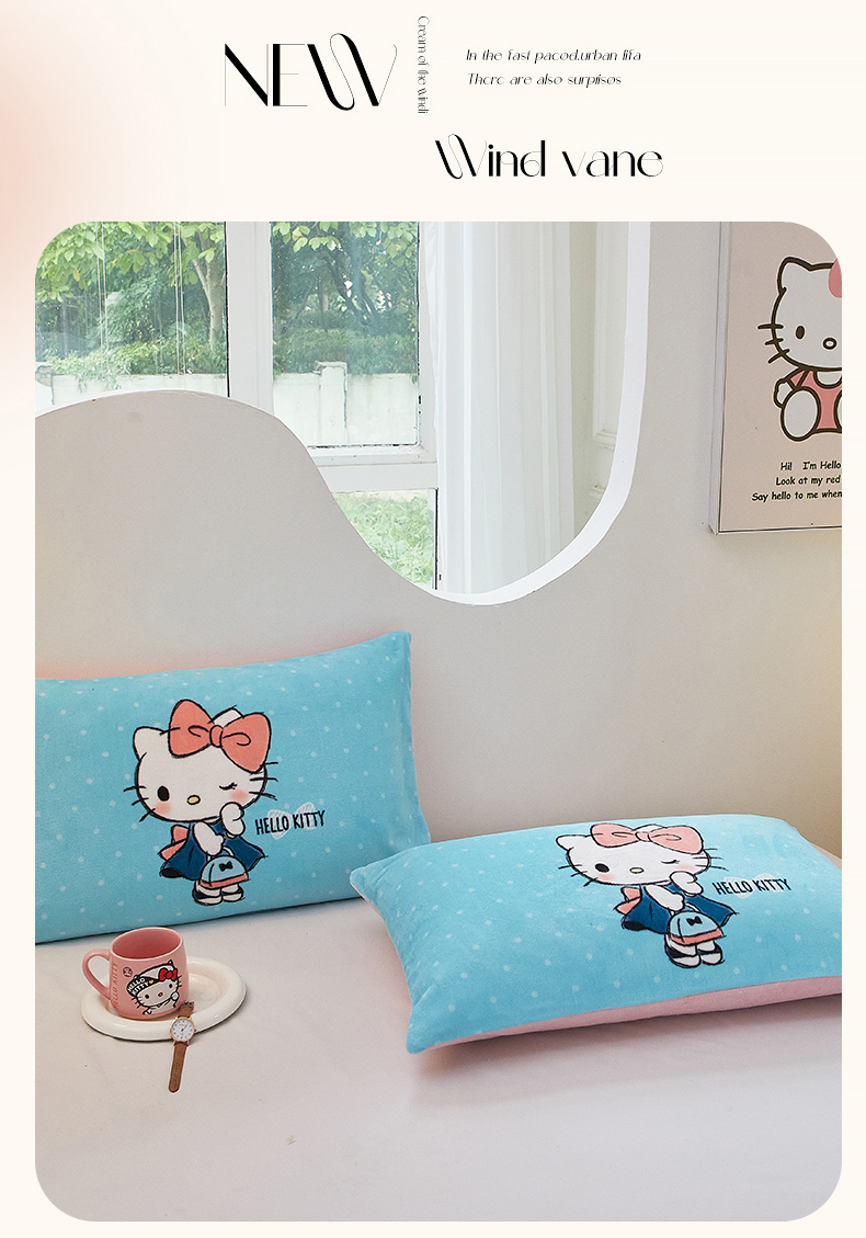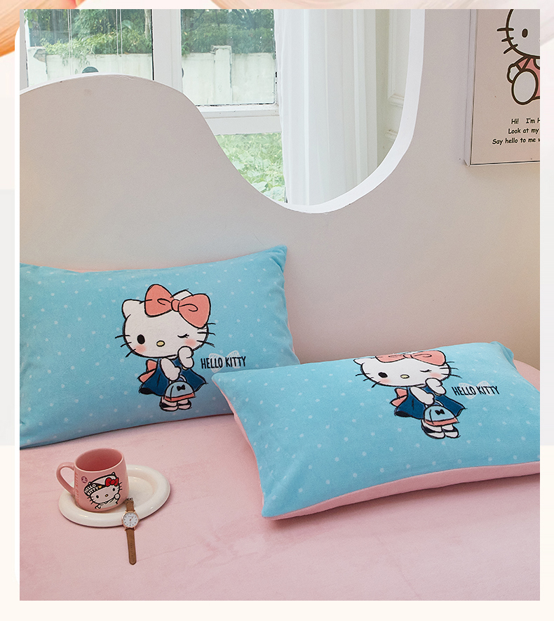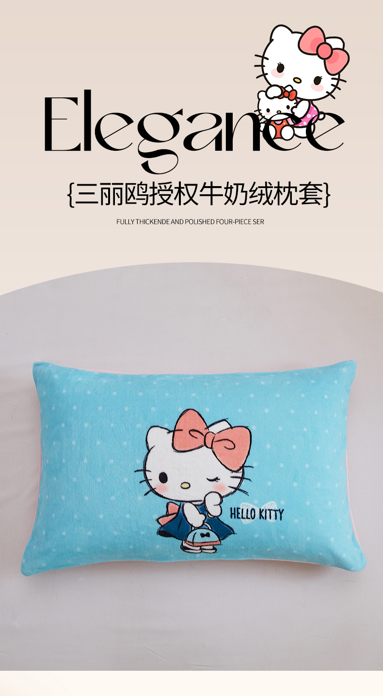 商品名称:蘭菲家纺 2024新款牛奶绒卡通三丽鸥单品枕套 摩卡蓝