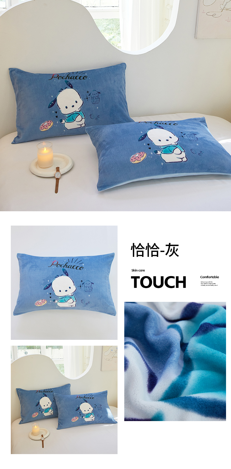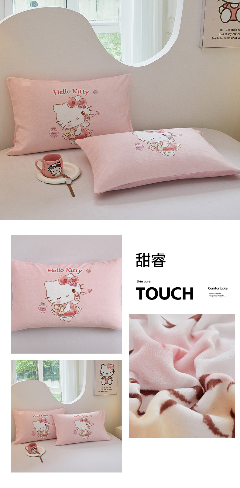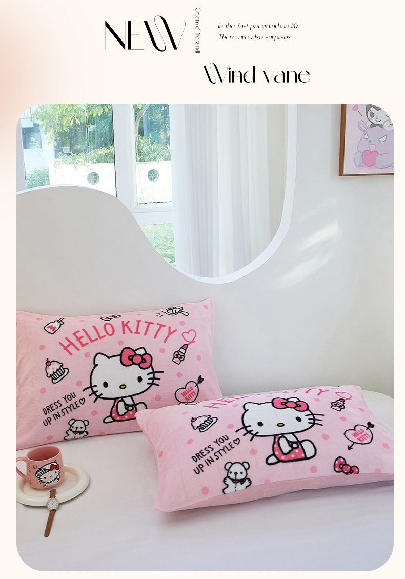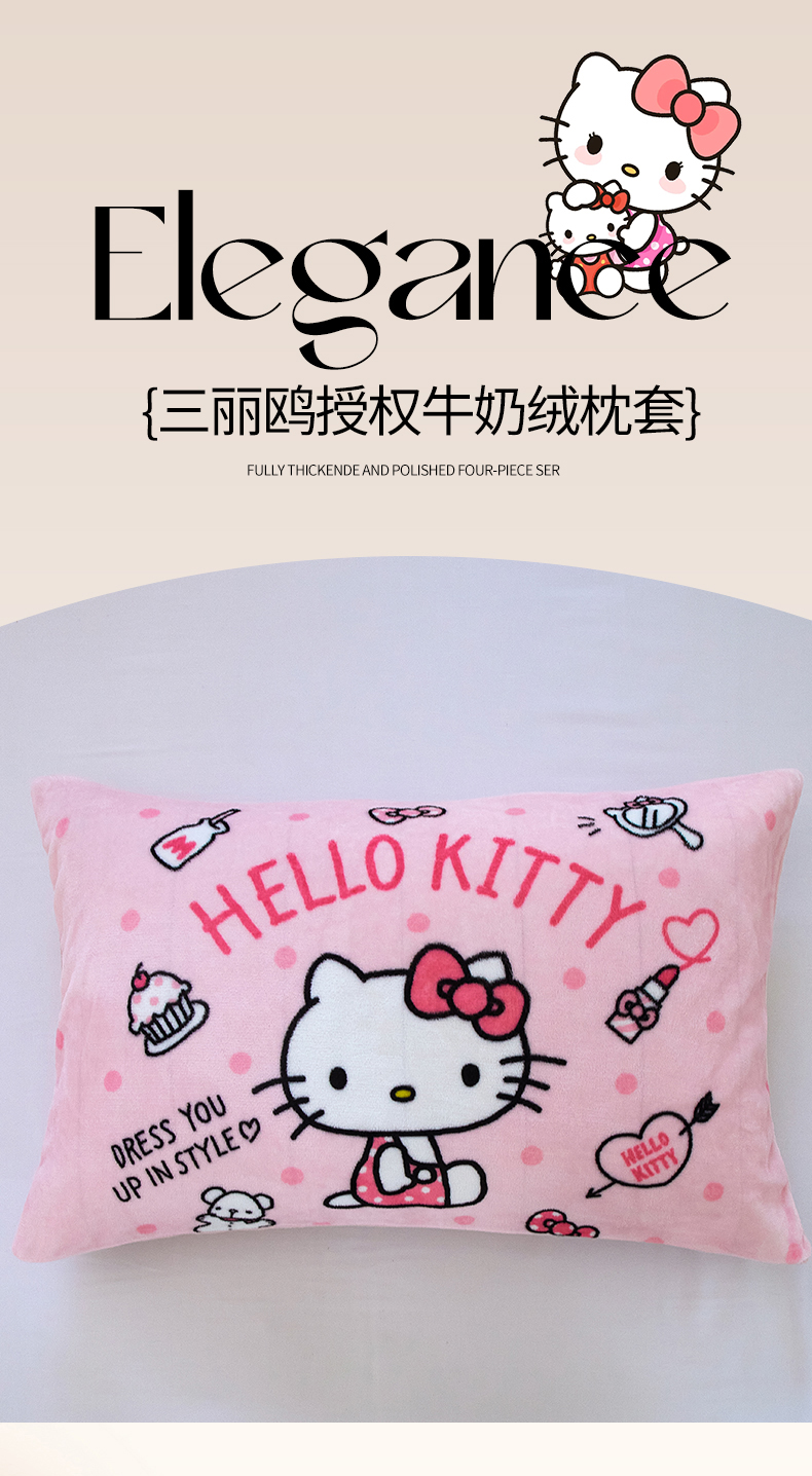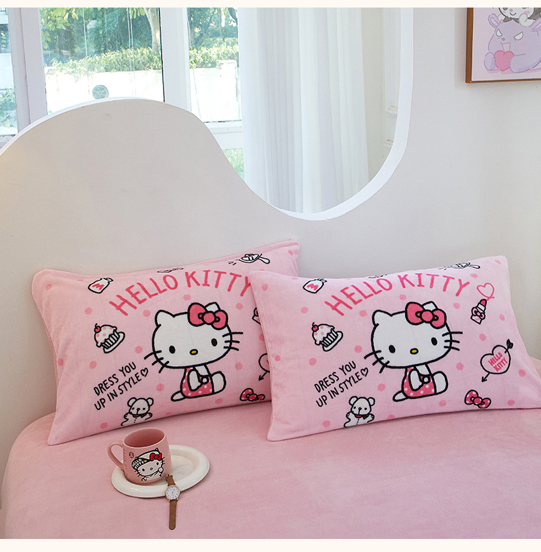 商品名称:蘭菲家纺 2024新款牛奶绒卡通三丽鸥单品枕套 甜小咪