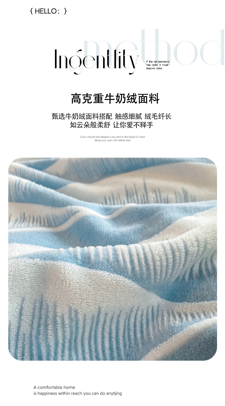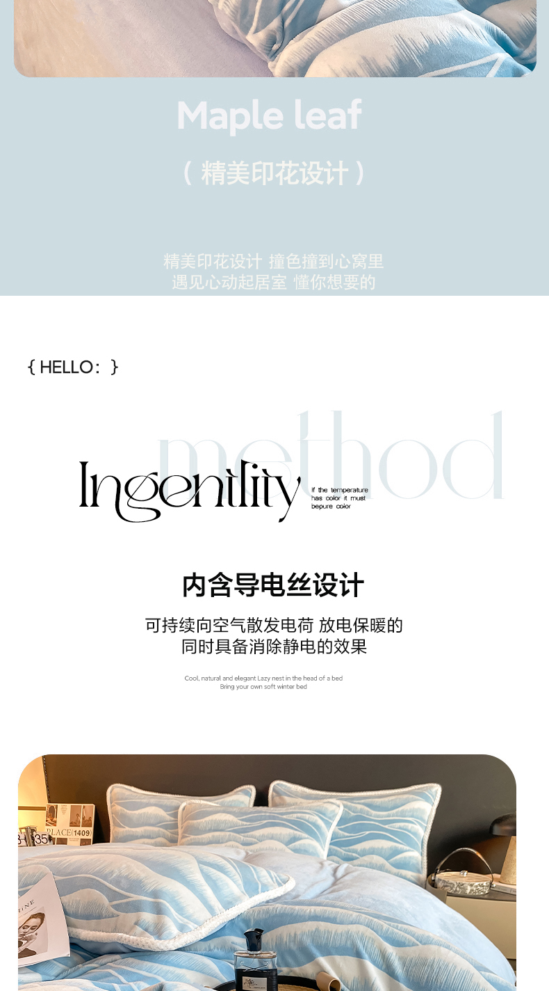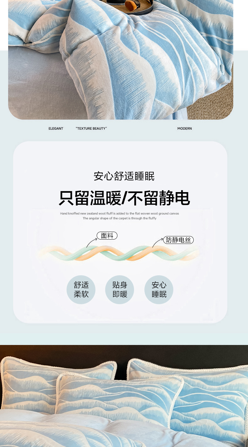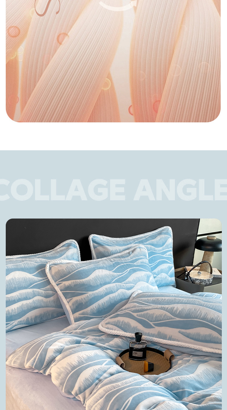 富之航家纺 2024新款牛奶绒剪花四件套 浪花-蓝