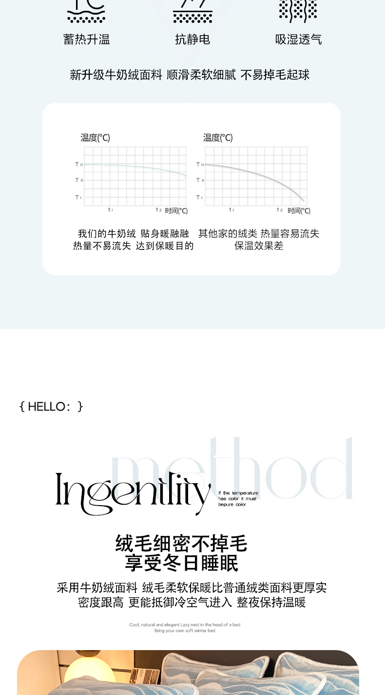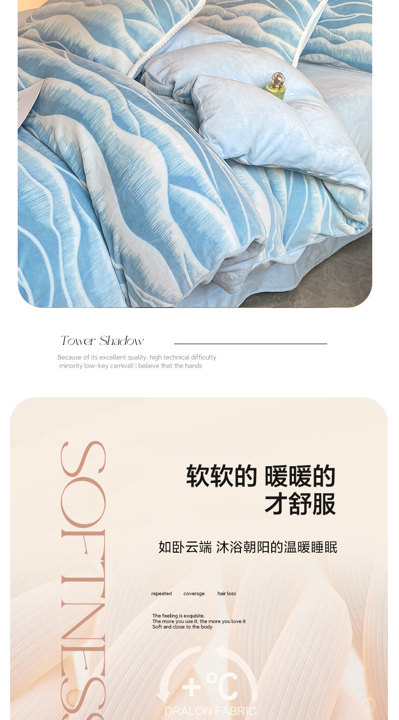商品名称:富之航家纺 2024新款牛奶绒剪花四件套 浪花-蓝