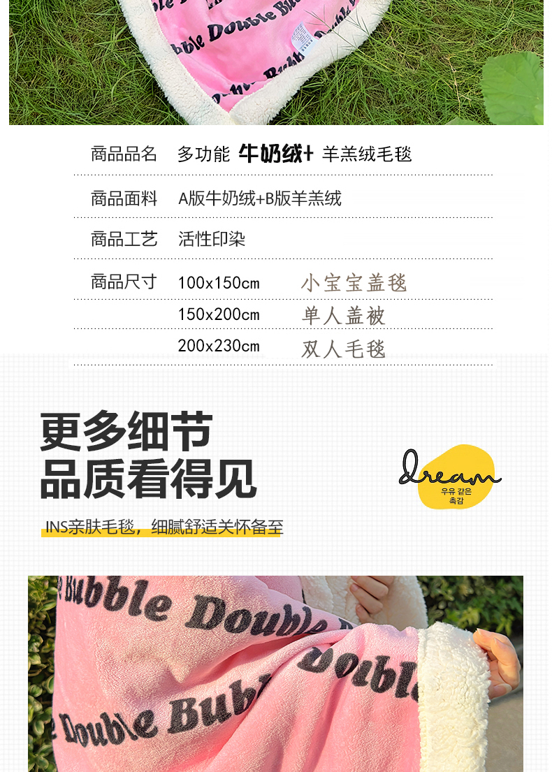 商品名称:(总)百寐 2024新款多功能牛奶绒+羊羔绒毛毯