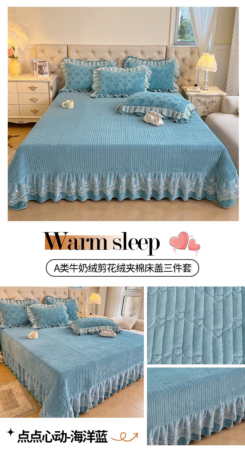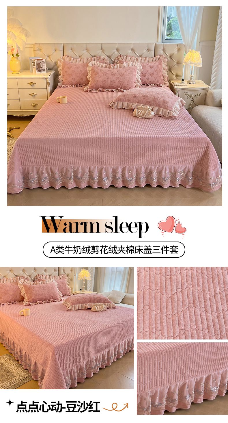 (总)宜凡家纺 2025新款兔绒提花牛奶绒夹棉床裙四件套,爱心 少女粉,爱心 粉紫,爱心 驼色,蝶舞 大红,蝶舞 米色,蝶舞 浅紫,蝶舞 玉色,简爱 苍青,简爱 豆沙紫,简爱 玉色,樱桃 苍青,樱桃 豆沙紫,樱桃 奶油白