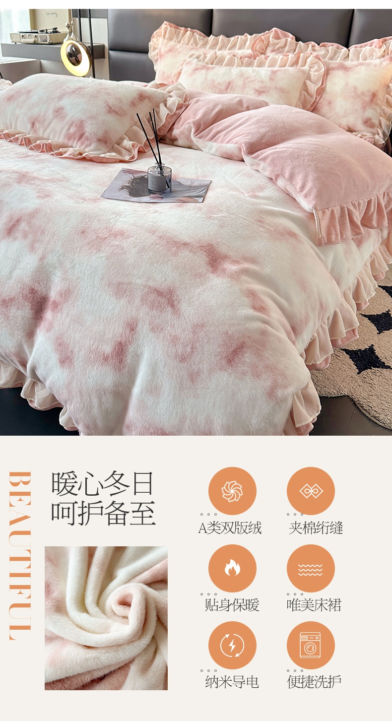 (总)宜凡家纺 2025新款兔绒提花牛奶绒夹棉床裙四件套,爱心 少女粉,爱心 粉紫,爱心 驼色,蝶舞 大红,蝶舞 米色,蝶舞 浅紫,蝶舞 玉色,简爱 苍青,简爱 豆沙紫,简爱 玉色,樱桃 苍青,樱桃 豆沙紫,樱桃 奶油白