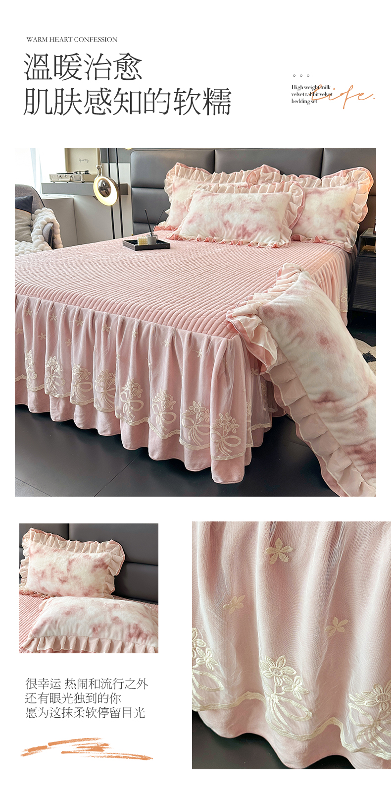 当前位置: 91家纺网 > 商品网购 > 床品套件 > 三件套 > 宜凡家纺 2024新款高克重牛奶绒兔绒床裙三件套 都市剪影 咖