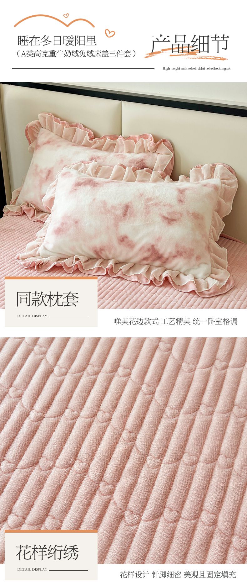 宜凡家纺 2024新款高克重牛奶绒兔绒床盖三件套 都市剪影 粉