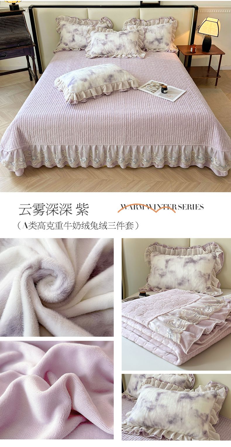 (总)宜凡家纺 2025新款兔绒提花牛奶绒夹棉床裙四件套,爱心 少女粉,爱心 粉紫,爱心 驼色,蝶舞 大红,蝶舞 米色,蝶舞 浅紫,蝶舞 玉色,简爱 苍青,简爱 豆沙紫,简爱 玉色,樱桃 苍青,樱桃 豆沙紫,樱桃 奶油白