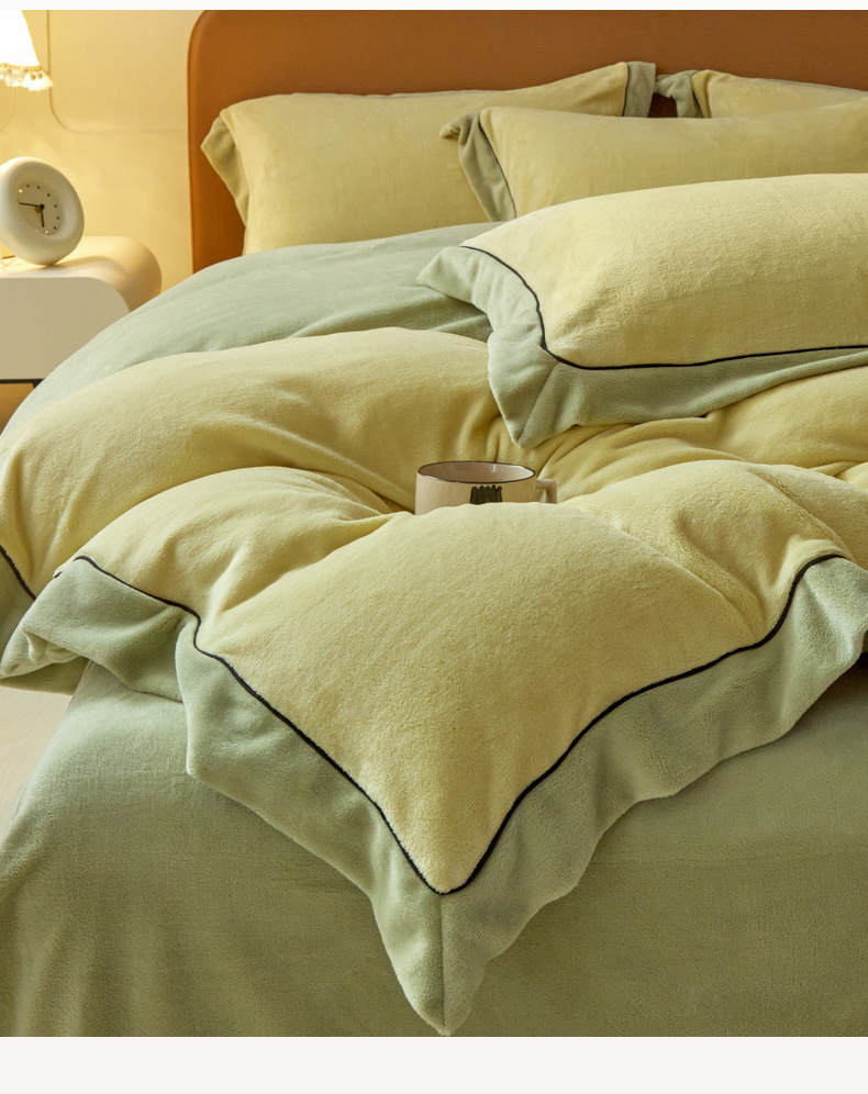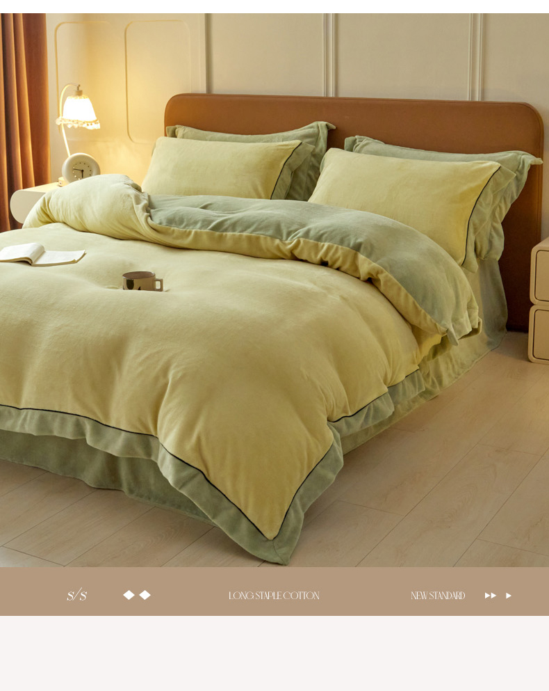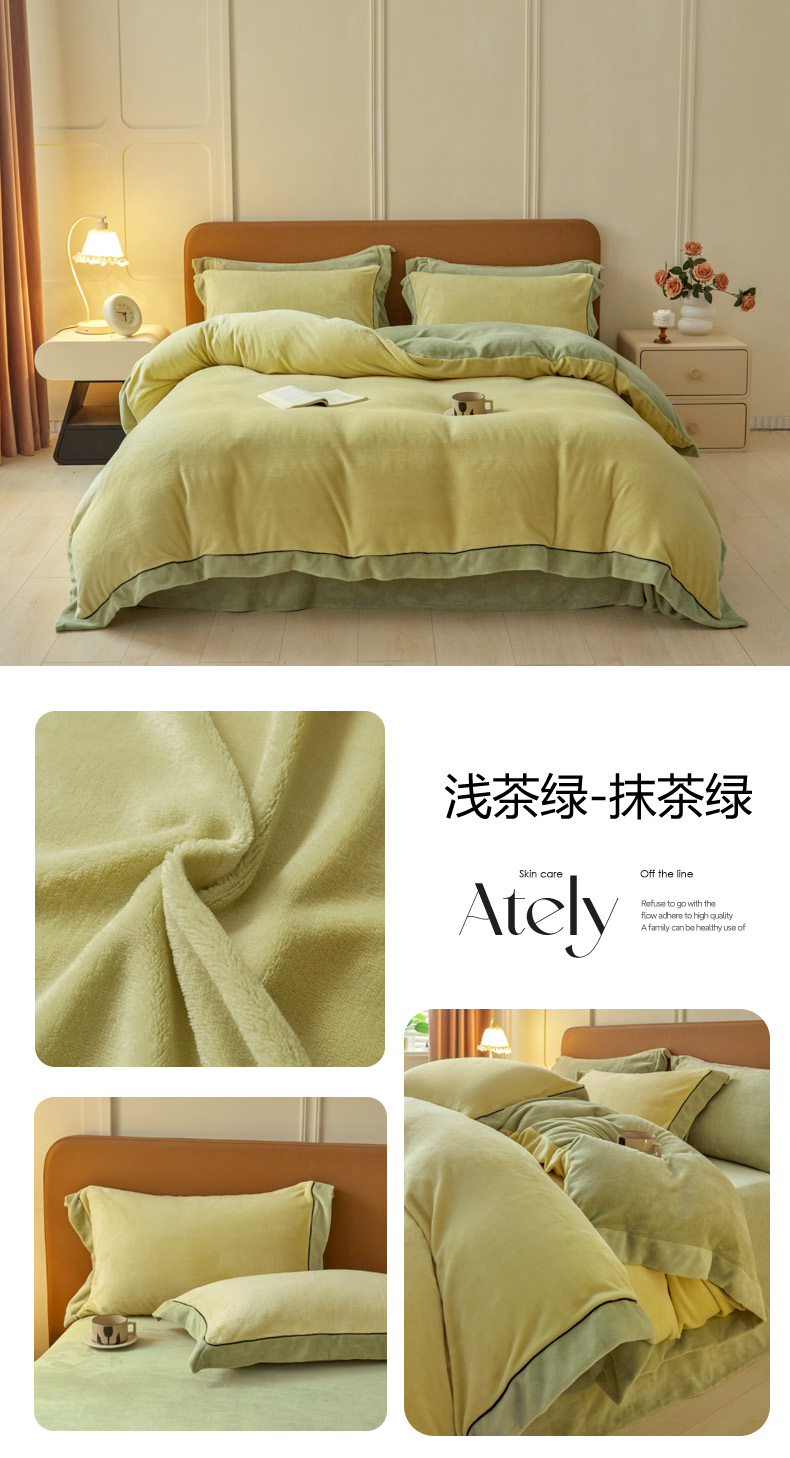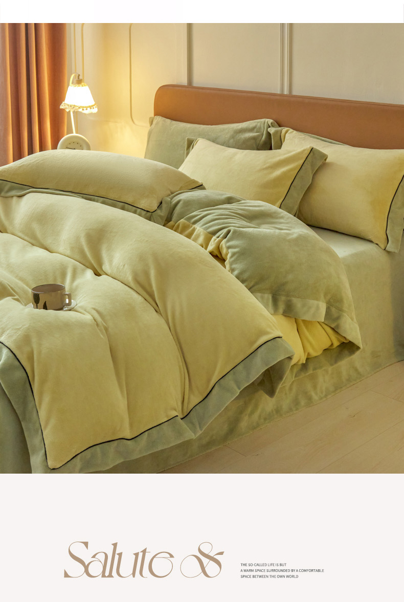 当前位置: 91家纺网 > 商品网购 > 床品套件 > 四件套 > 牛奶绒四件套 > 万盛家纺 2025新款牛奶绒拼色宽边四件套 浅茶绿-抹茶绿
