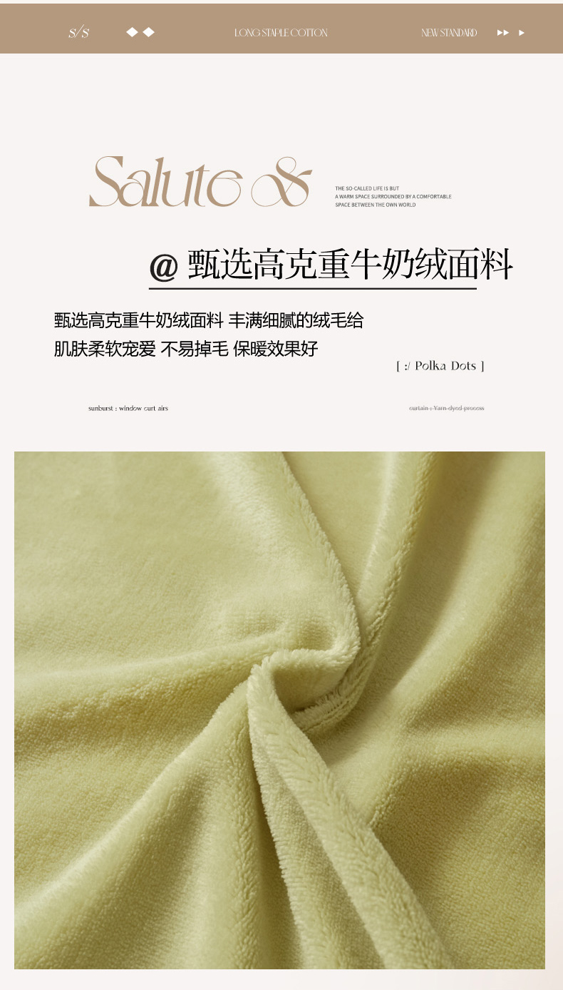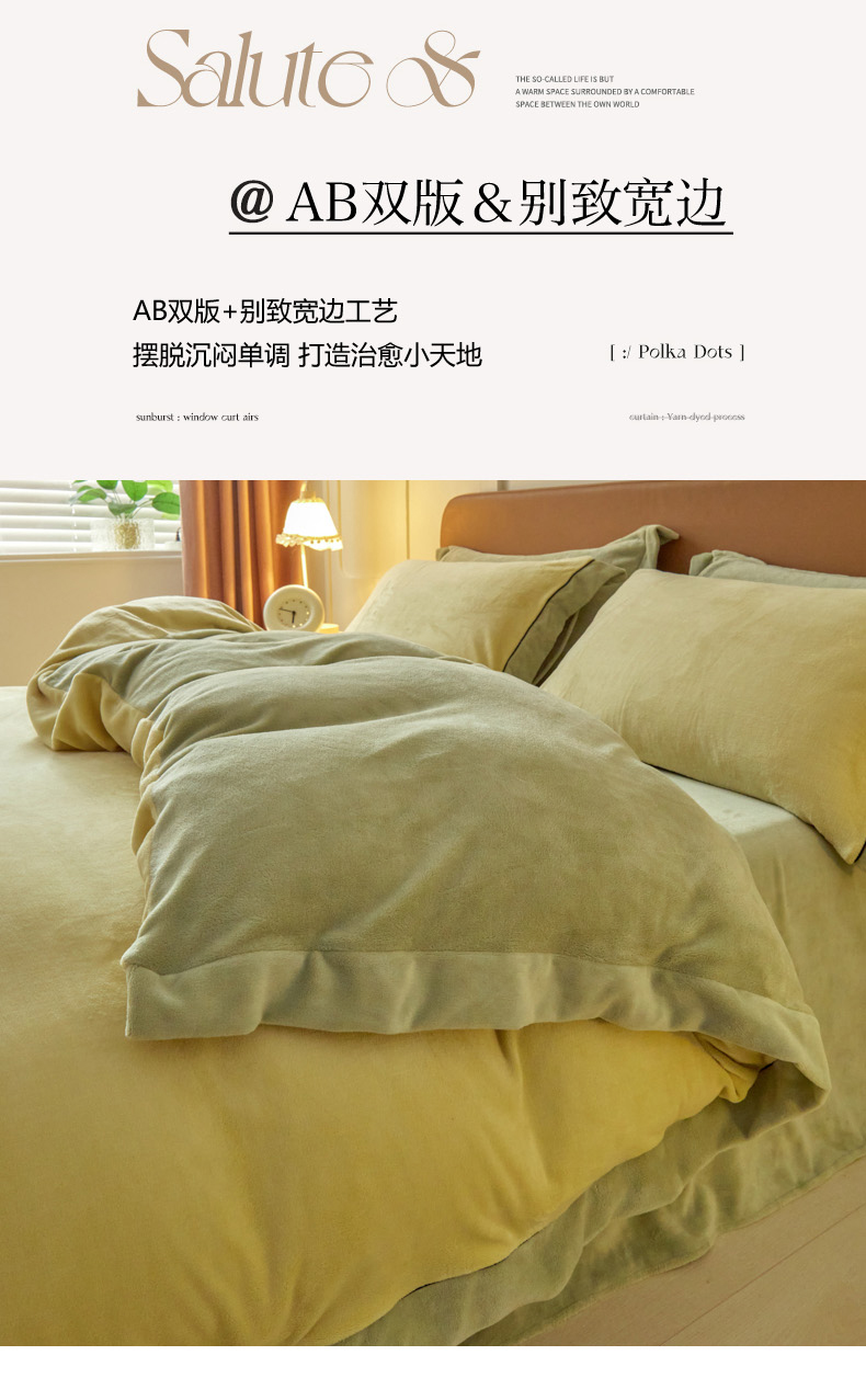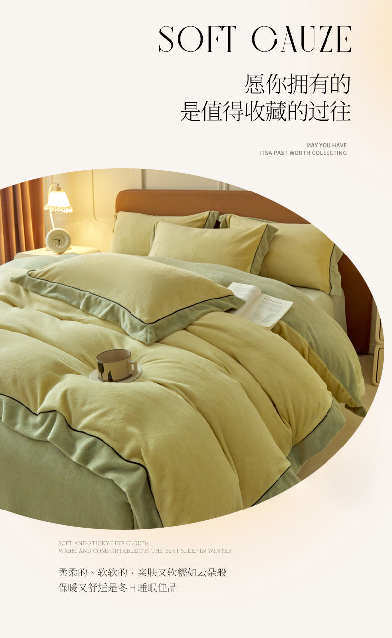 当前位置: 91家纺网 > 商品网购 > 床品套件 > 四件套 > 牛奶绒四件套 > 万盛家纺 2025新款牛奶绒拼色宽边四件套 浅茶绿-抹茶绿