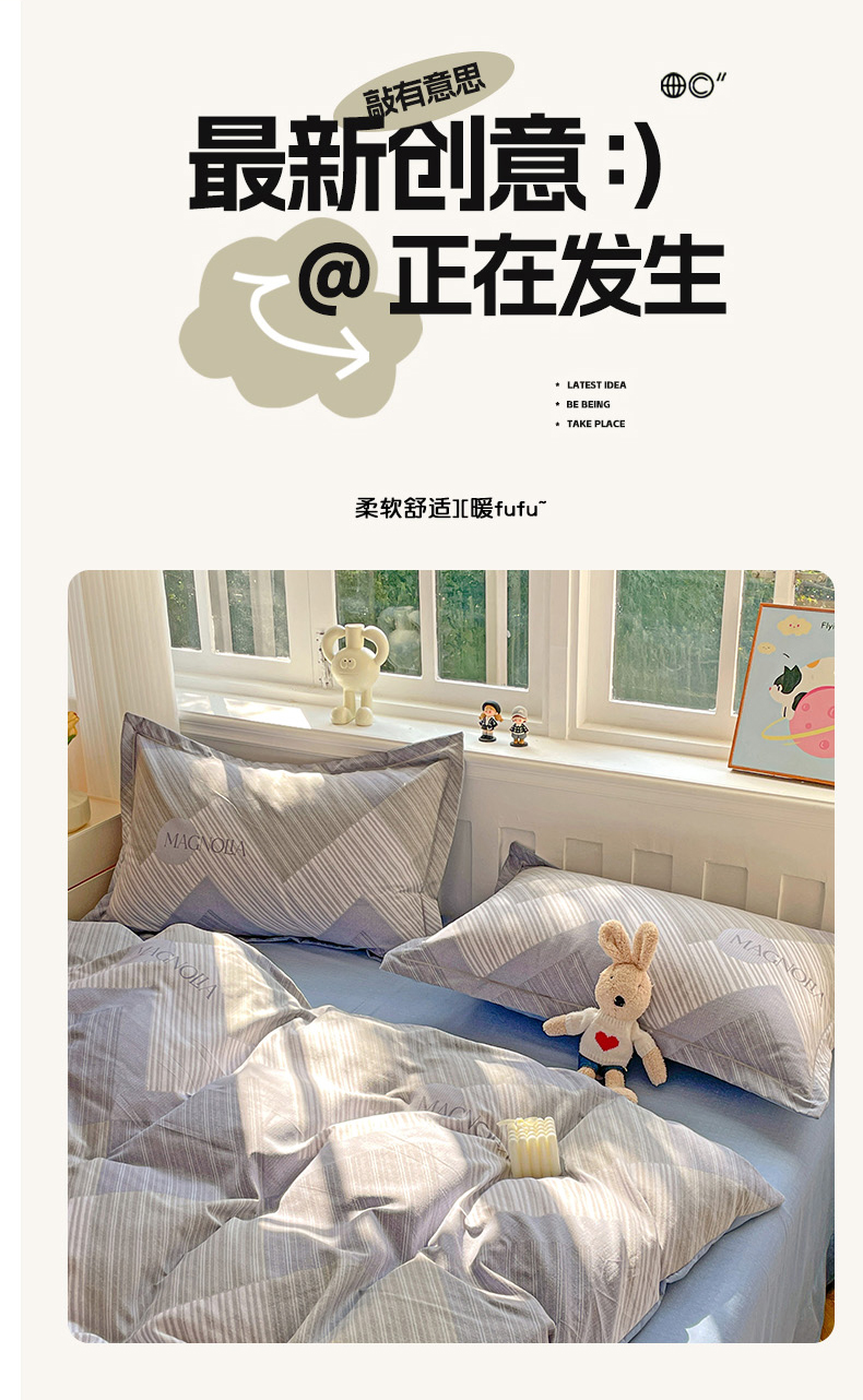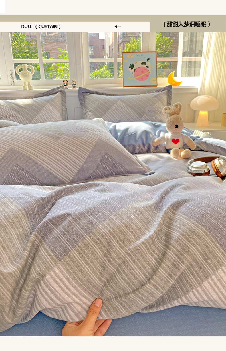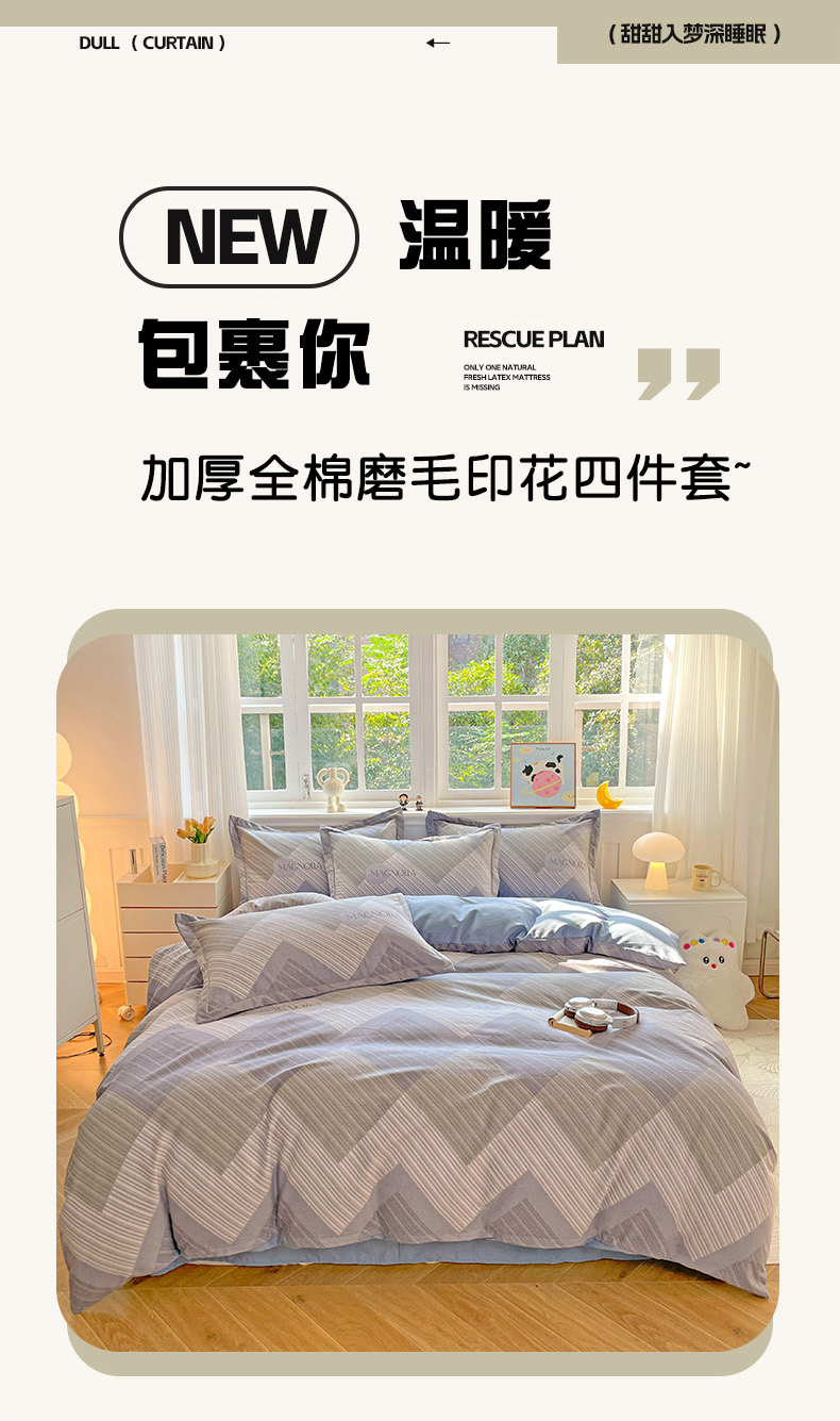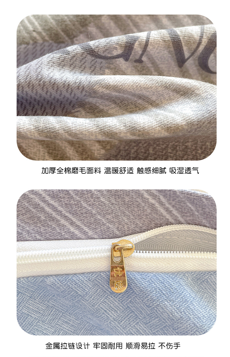 商品名称:暖芯优选 2025新款直播爆款加厚全棉磨毛四件套喷气印花纯棉(一字绣工艺款)学生三件套10月上新 费洛斯