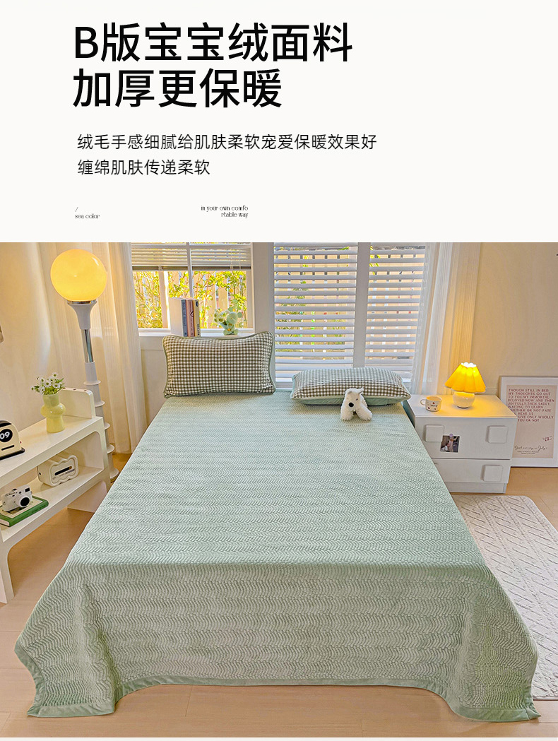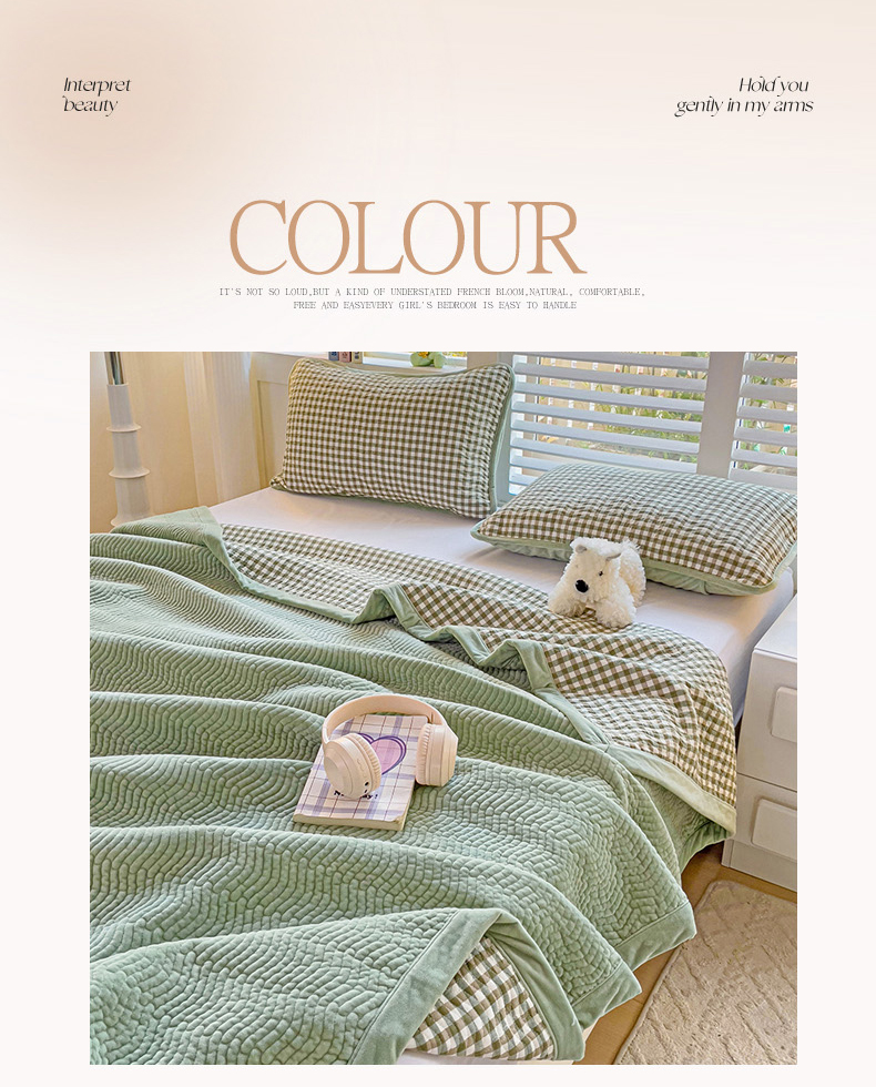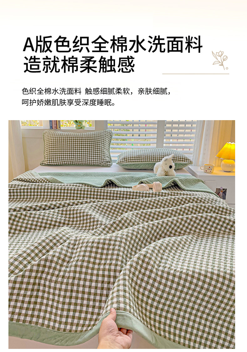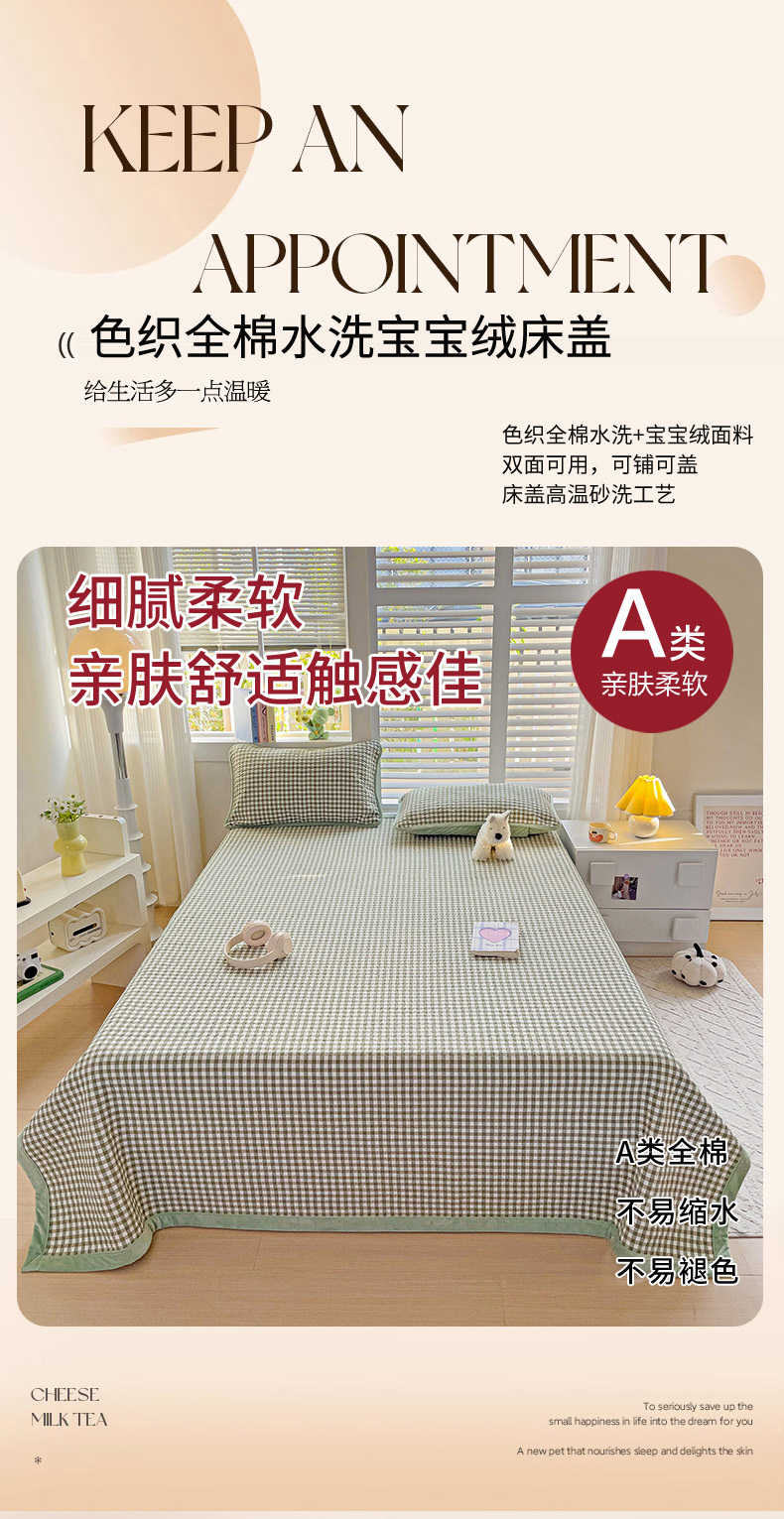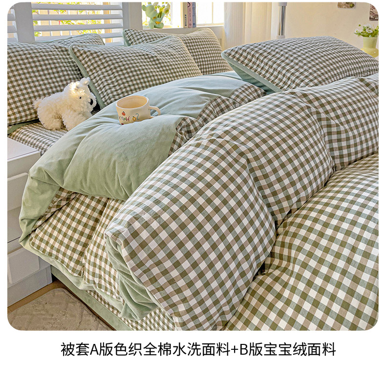 当前位置: 91家纺网 > 商品网购 > 床品套件 > 四件套 > 其它四件套 > 羽爱家纺 2024新款全棉色织水洗宝宝绒床盖四件套 绿意盎然