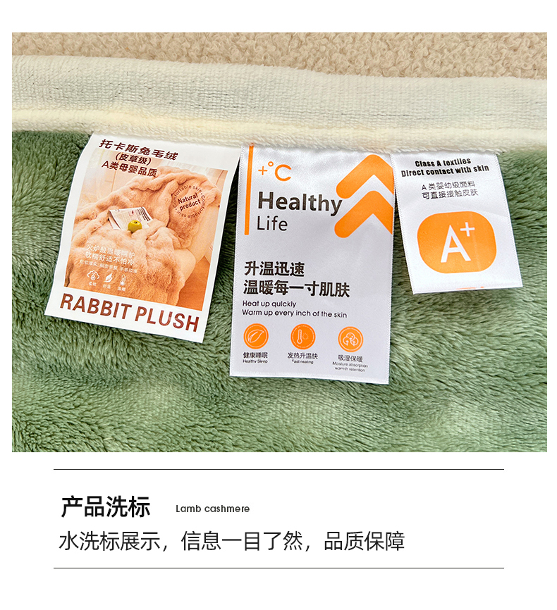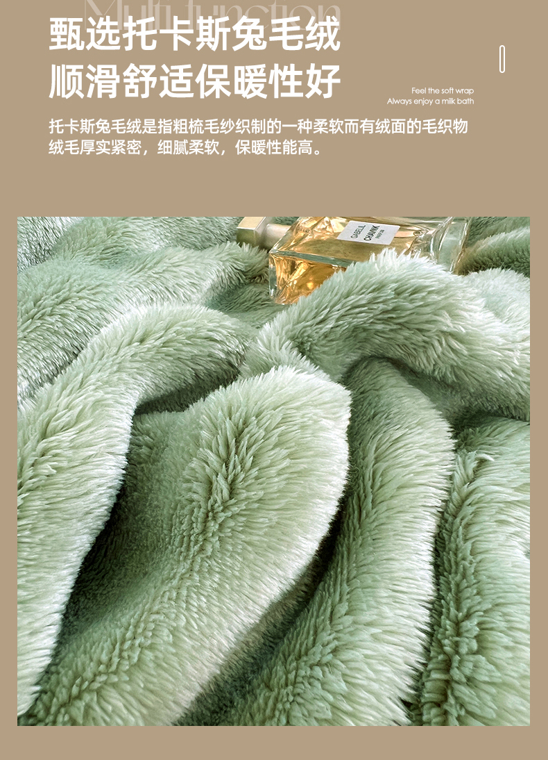 商品名称:悦织湾家纺 2025新款托卡斯仿兔毛绒毛毯第三批绸布包边新款加厚保暖多功能毯子保暖盖毯 松石绿