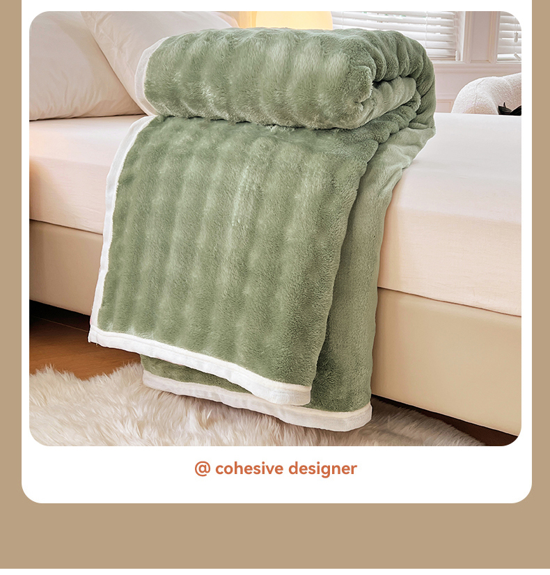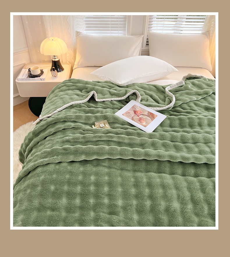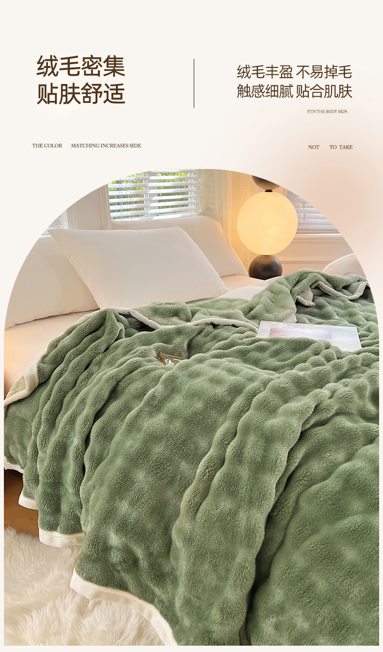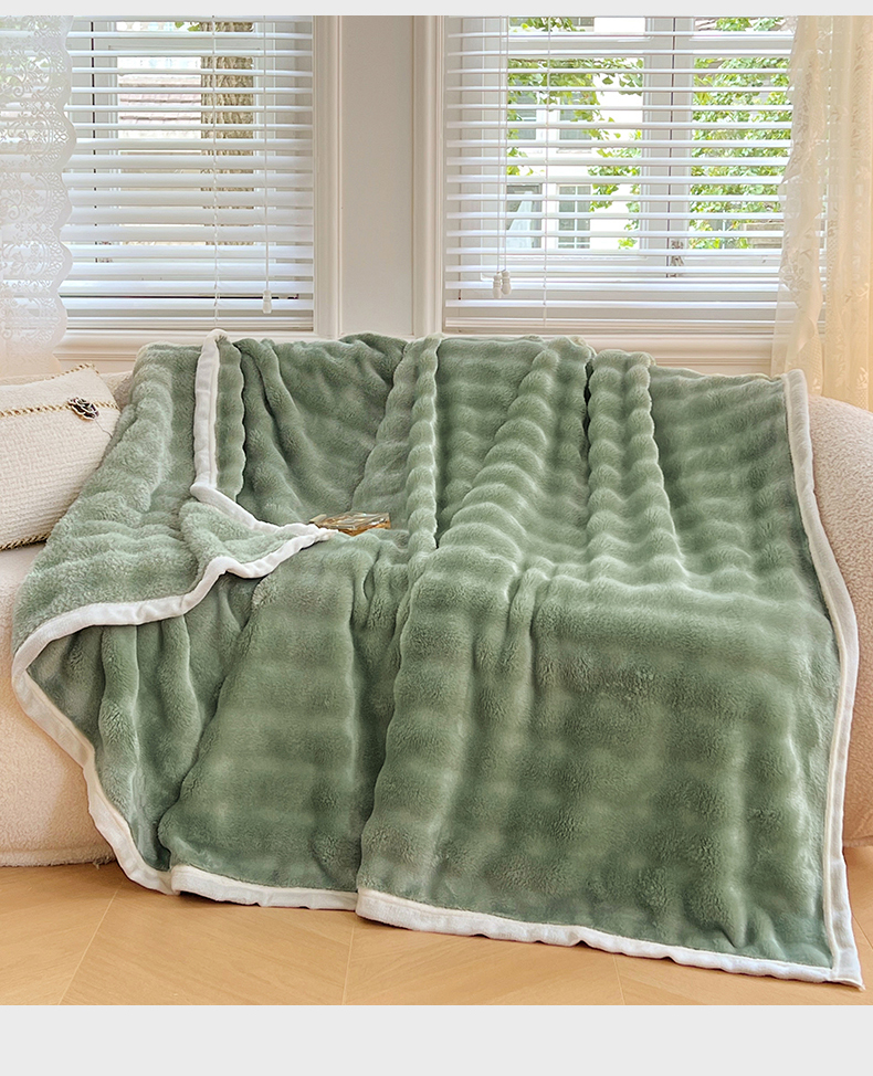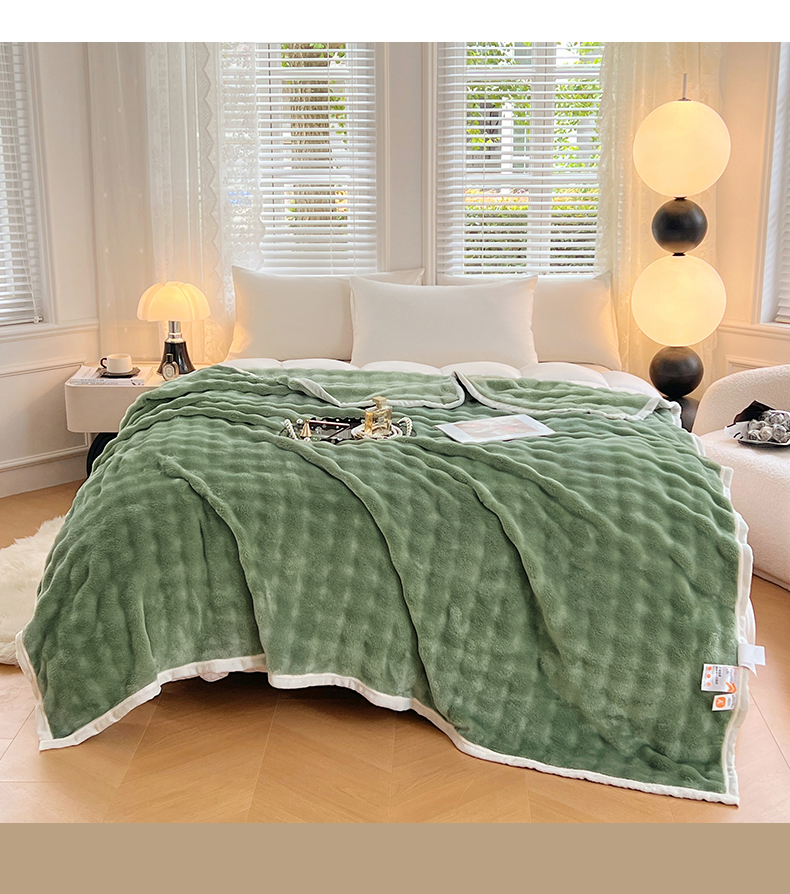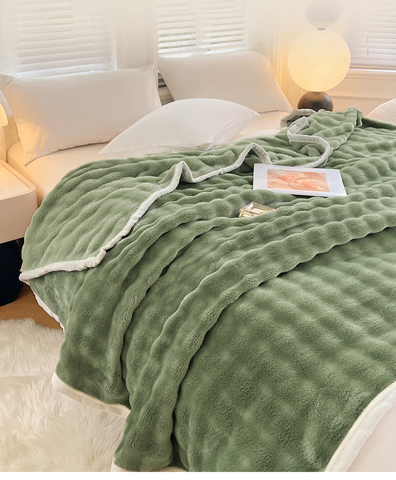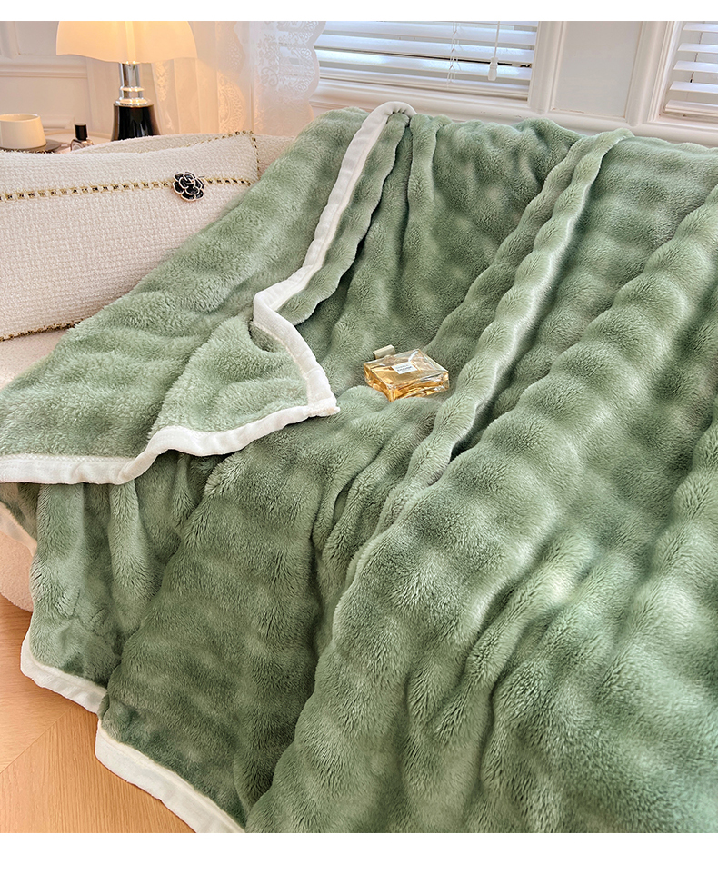悦织湾家纺 2025新款托卡斯仿兔毛绒毛毯第三批绸布包边新款加厚保暖多功能毯子保暖盖毯 松石绿
