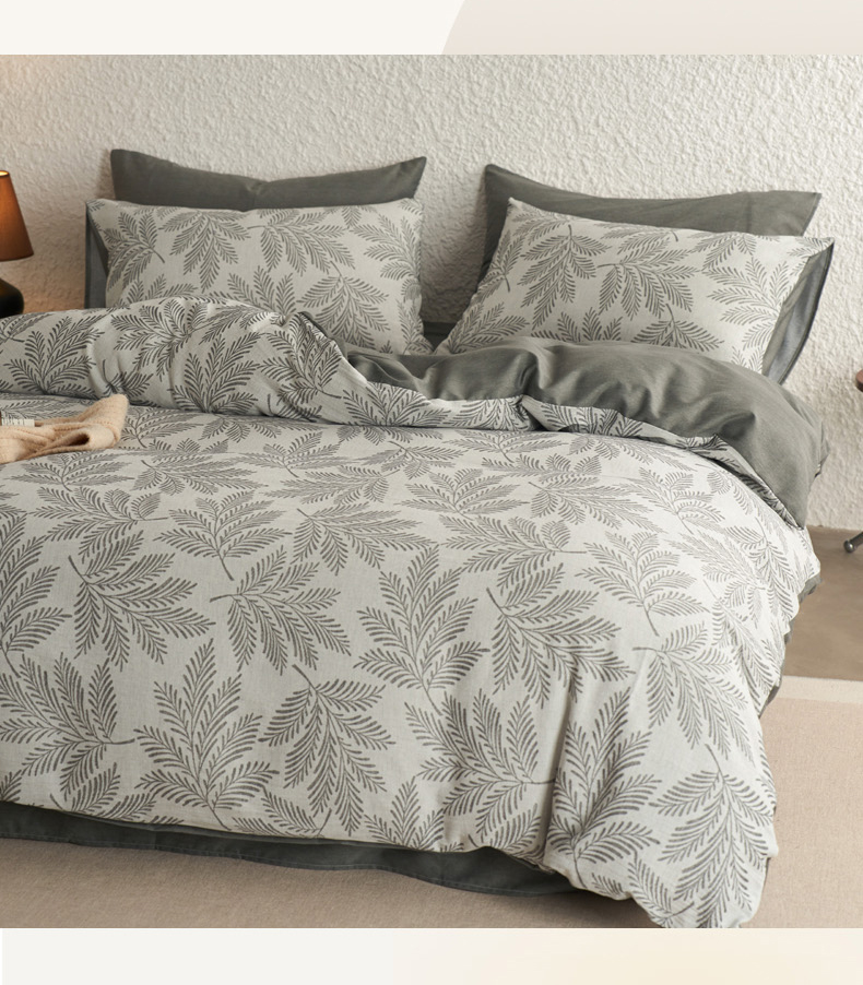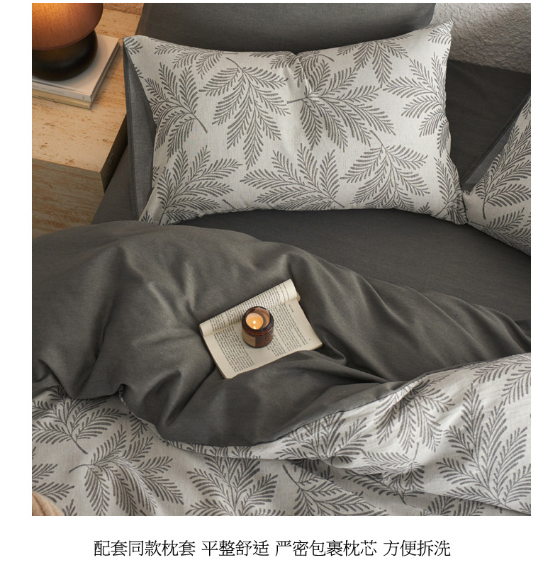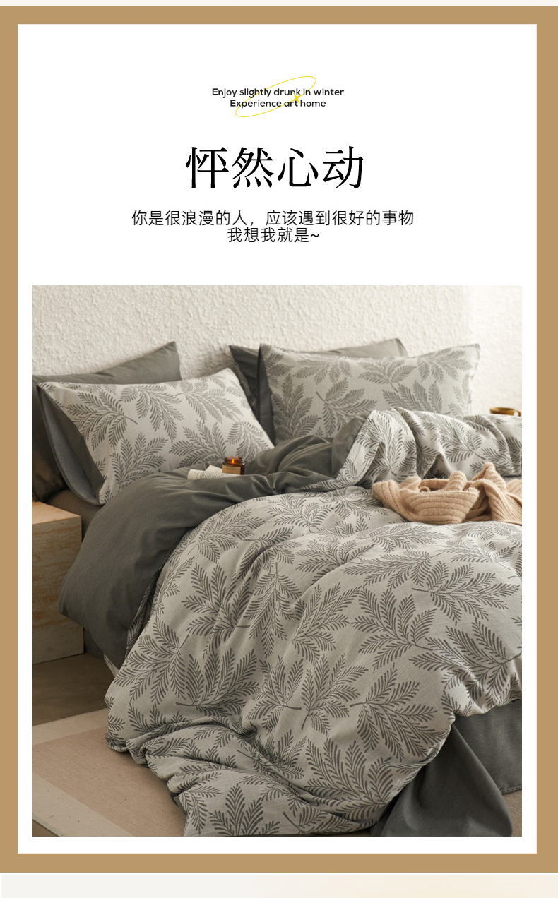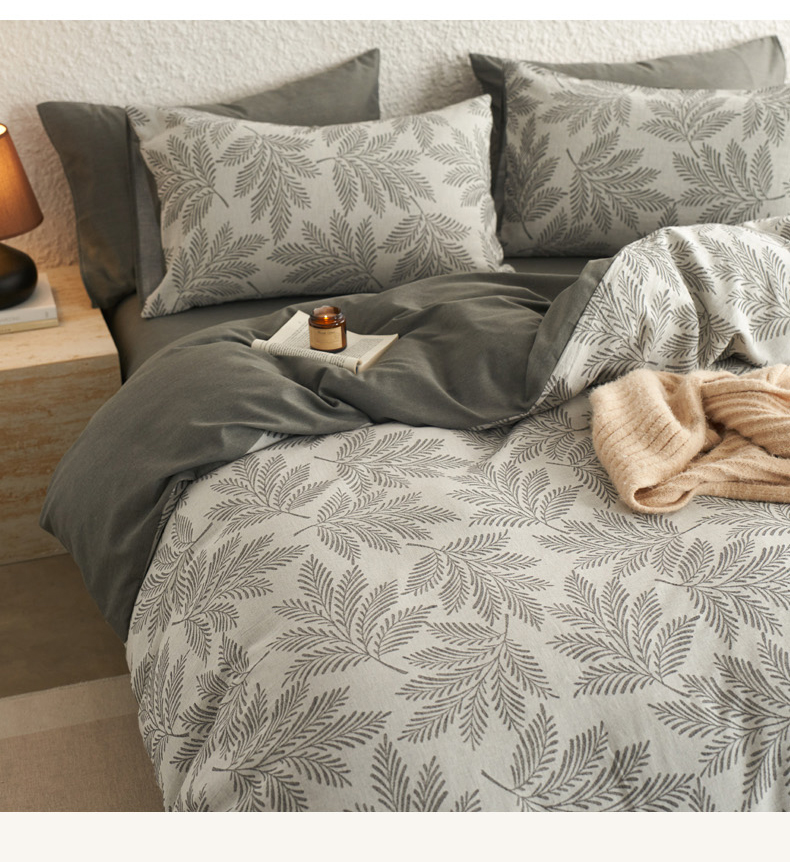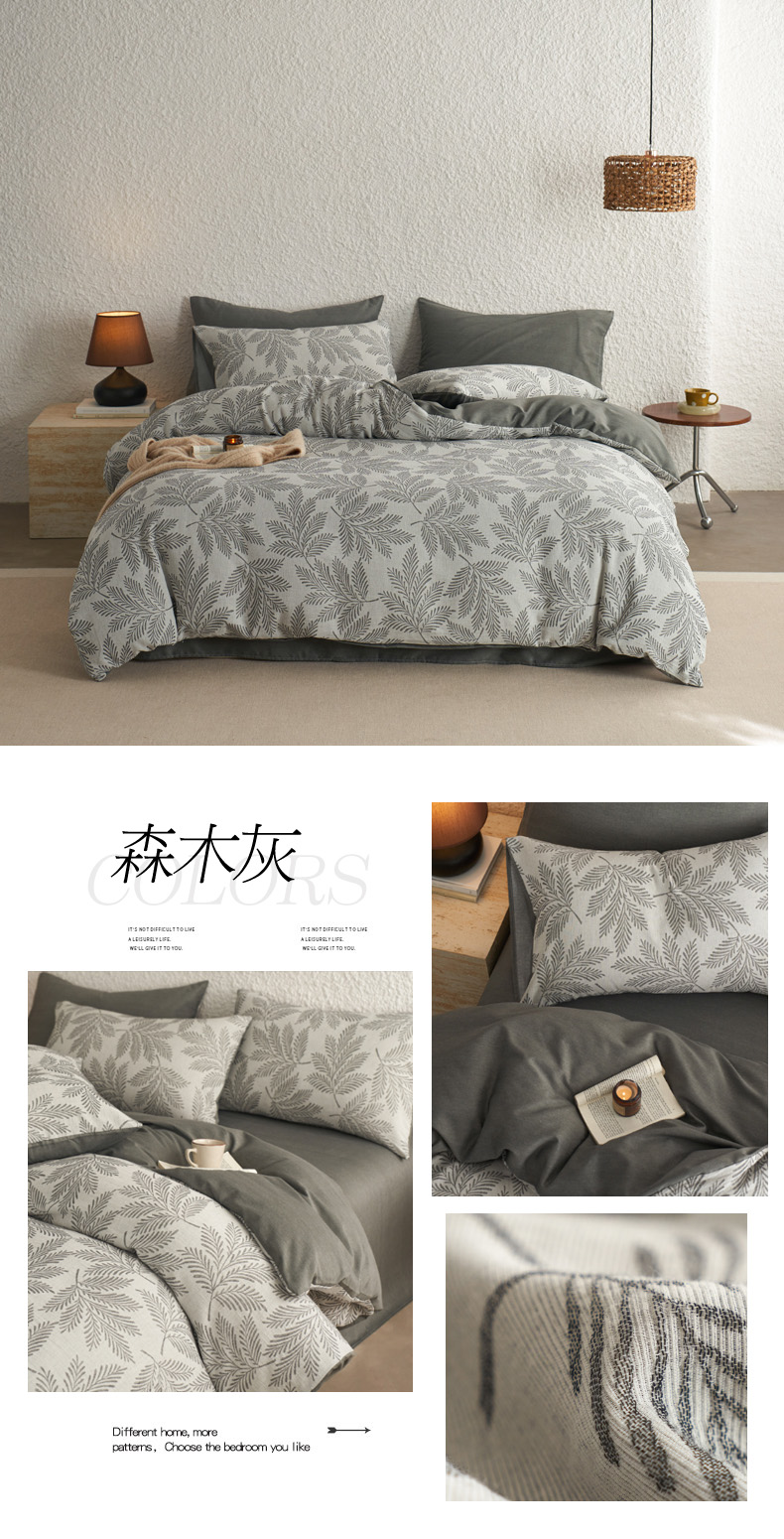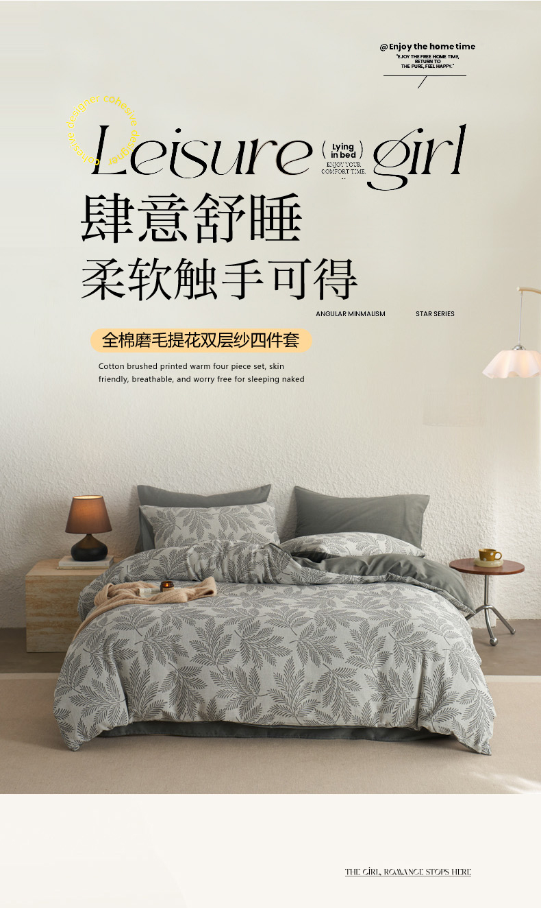 当前位置: 91家纺网 > 商品网购 > 床品套件 > 四件套 > 普通磨毛四件套 > 慕尚家纺 2025新款磨毛提花双层纱四件套 森木灰