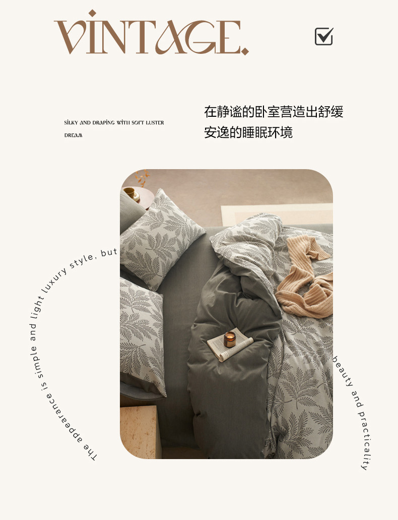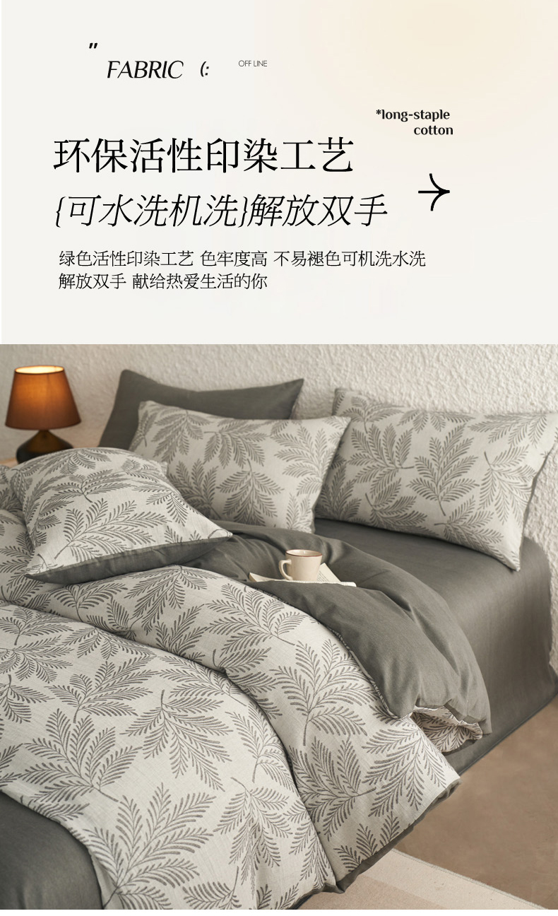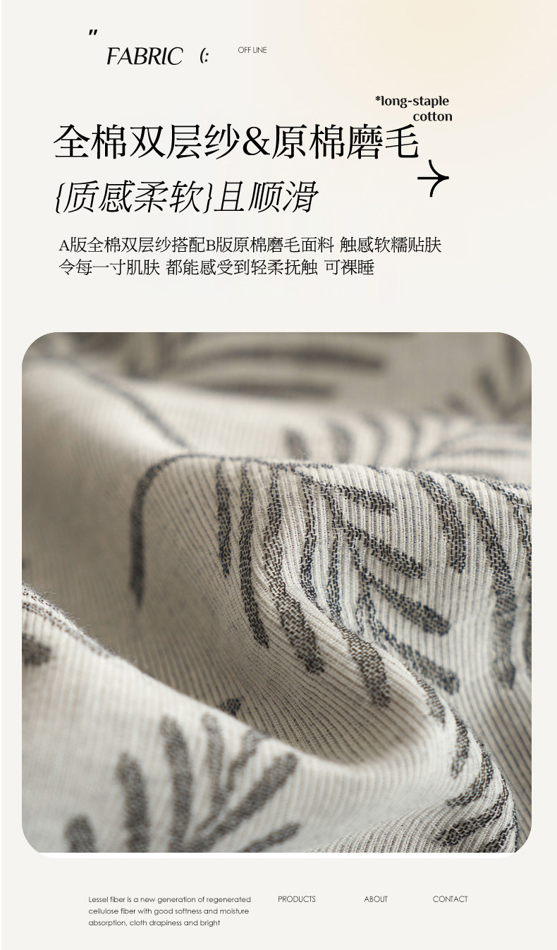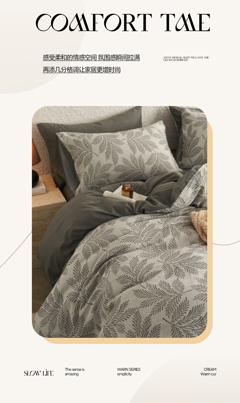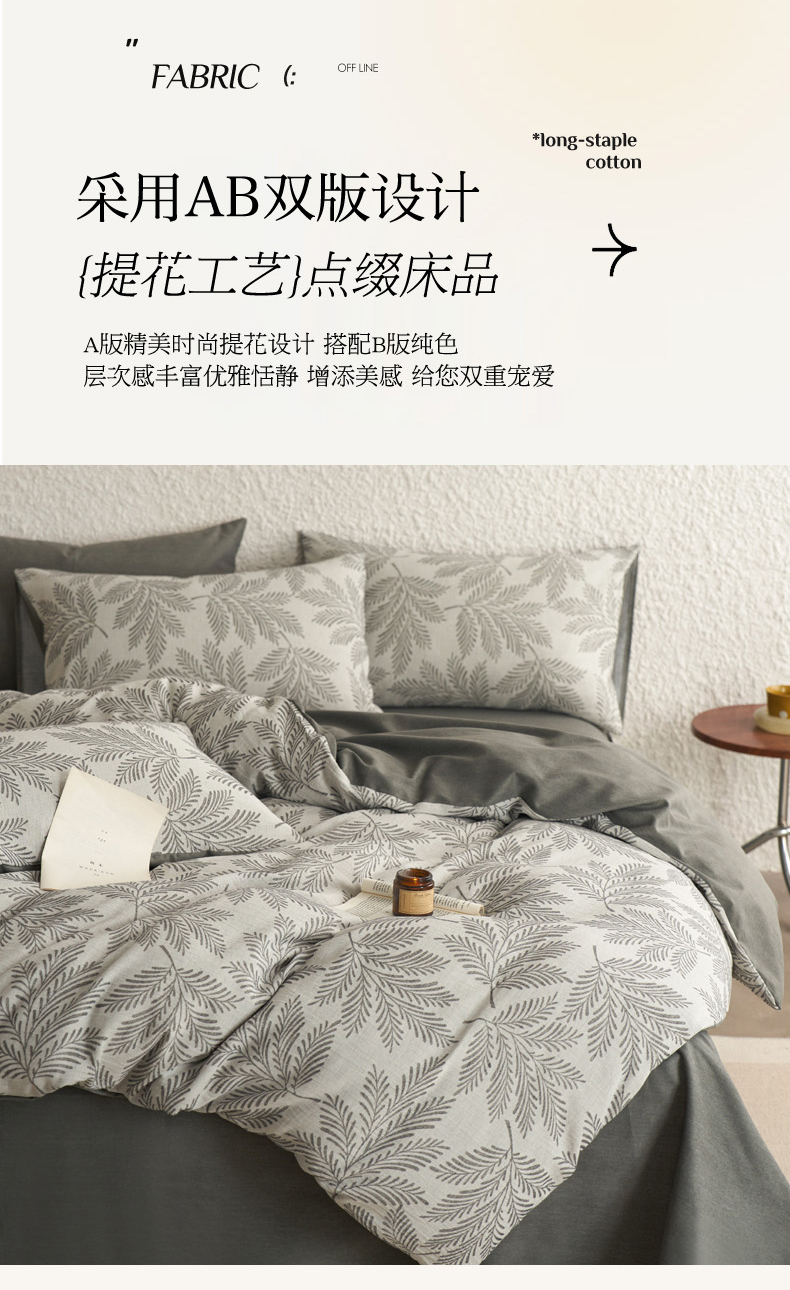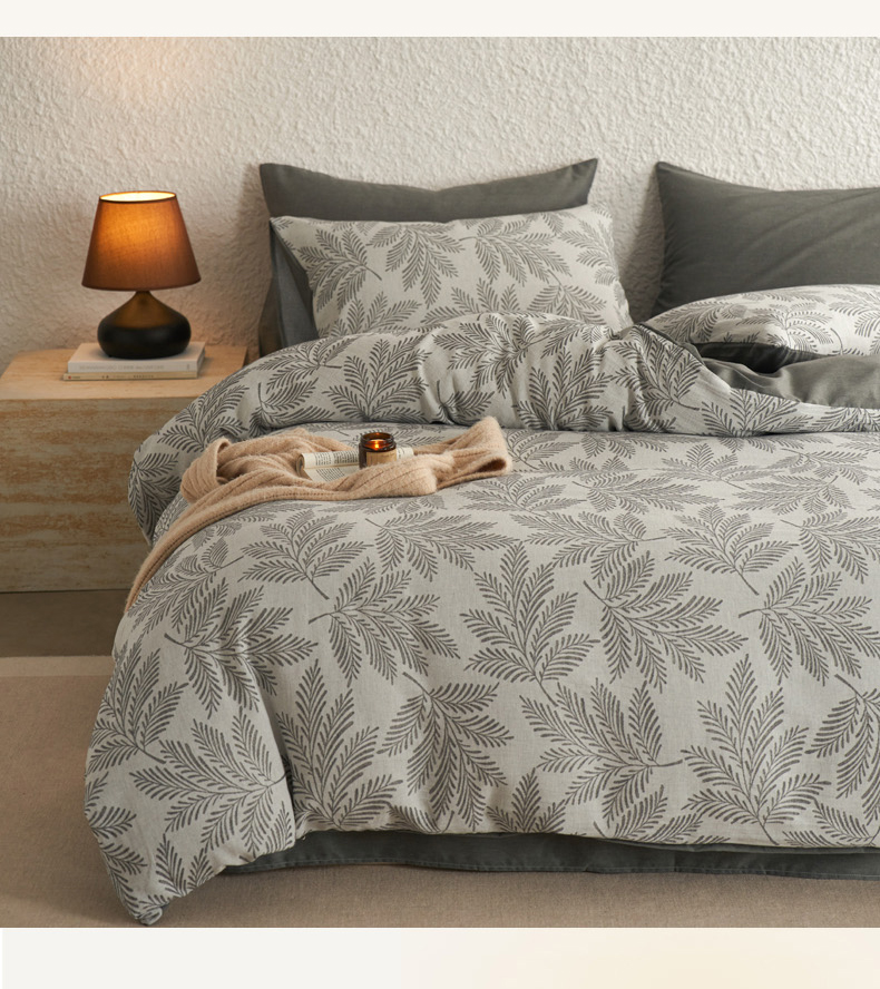 当前位置: 91家纺网 > 商品网购 > 床品套件 > 四件套 > 普通磨毛四件套 > 慕尚家纺 2025新款磨毛提花双层纱四件套 森木灰