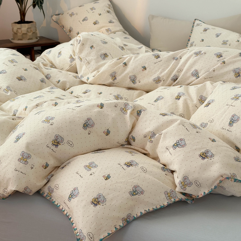 洋铭区(原狠狠爱) 2024新款新花全棉双层纱四件套 吉他小象
