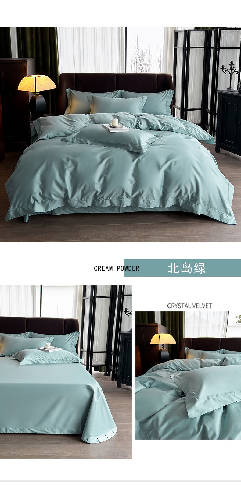 商品名称:淳绵家居 2024新款50*50S长绒棉纯色定制四件套特殊尺寸一件可定被套枕套床单床笠-邂逅 北岛绿