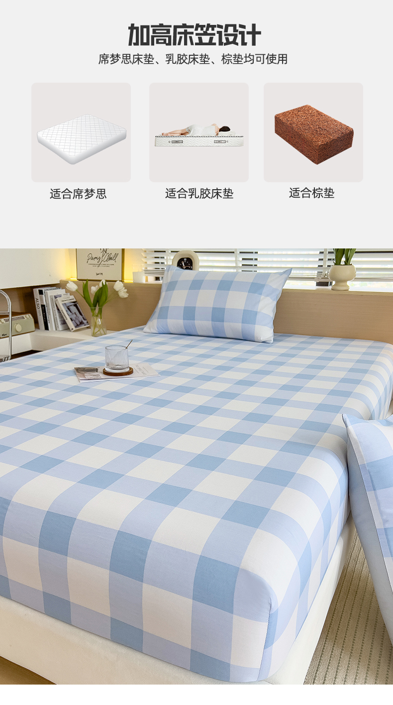 • 91家纺网 家纺一手货源 找家纺 798家纺 2025新款12868全棉格子纯色单床笠 爱尔兰