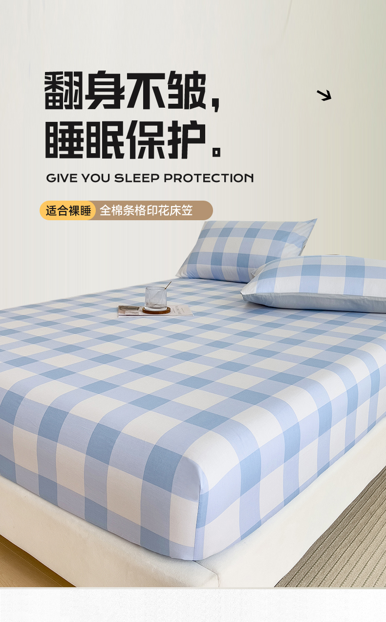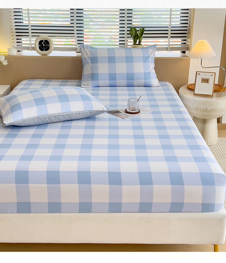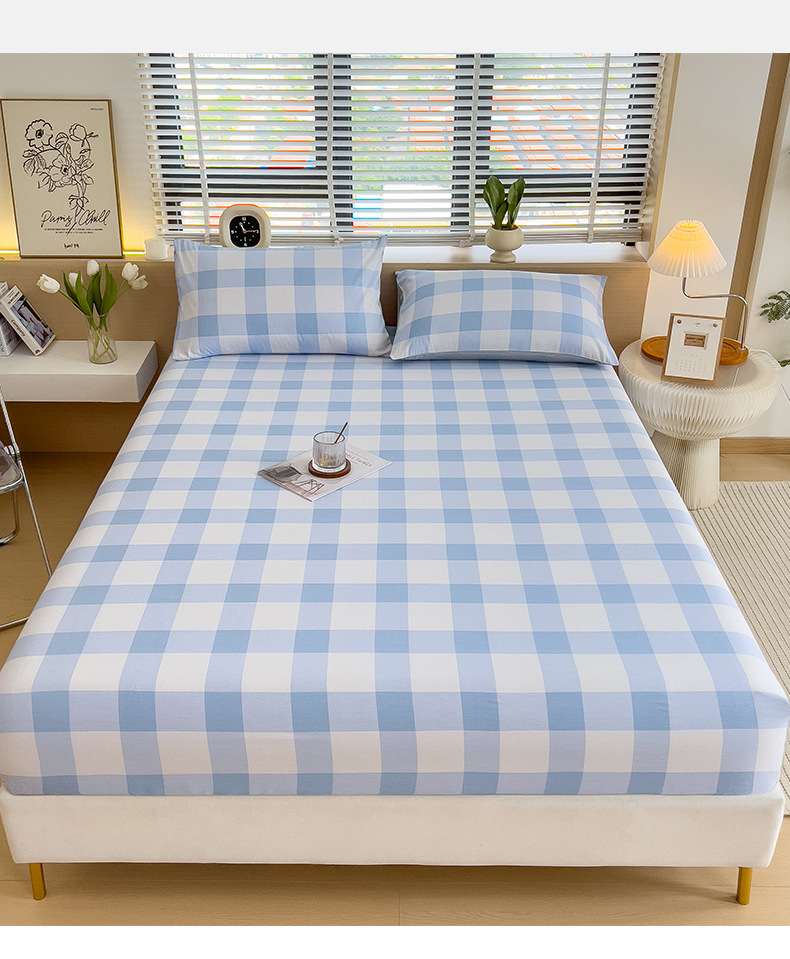 798家纺 2025新款12868全棉格子纯色单床笠 爱尔兰
