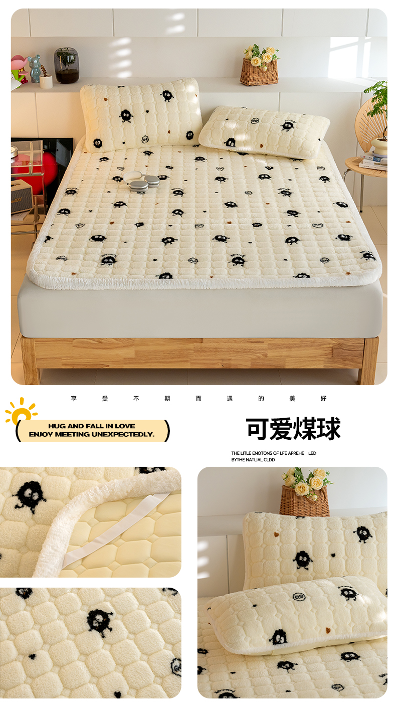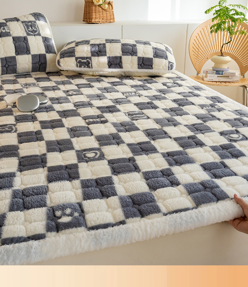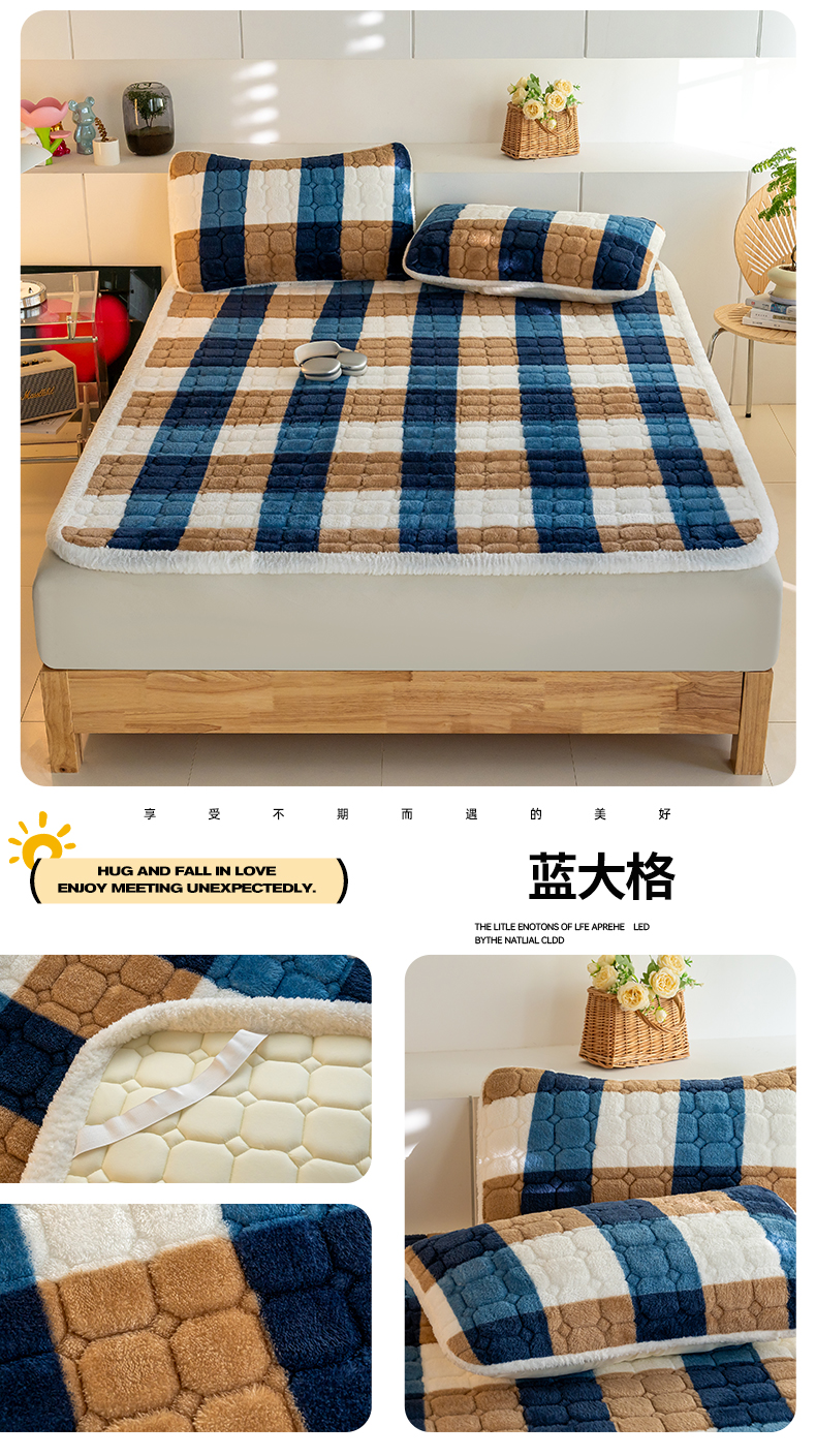 商品名称:花言狐语 2025新款北极绒保暖夹棉加厚床褥-大床 蓝大格