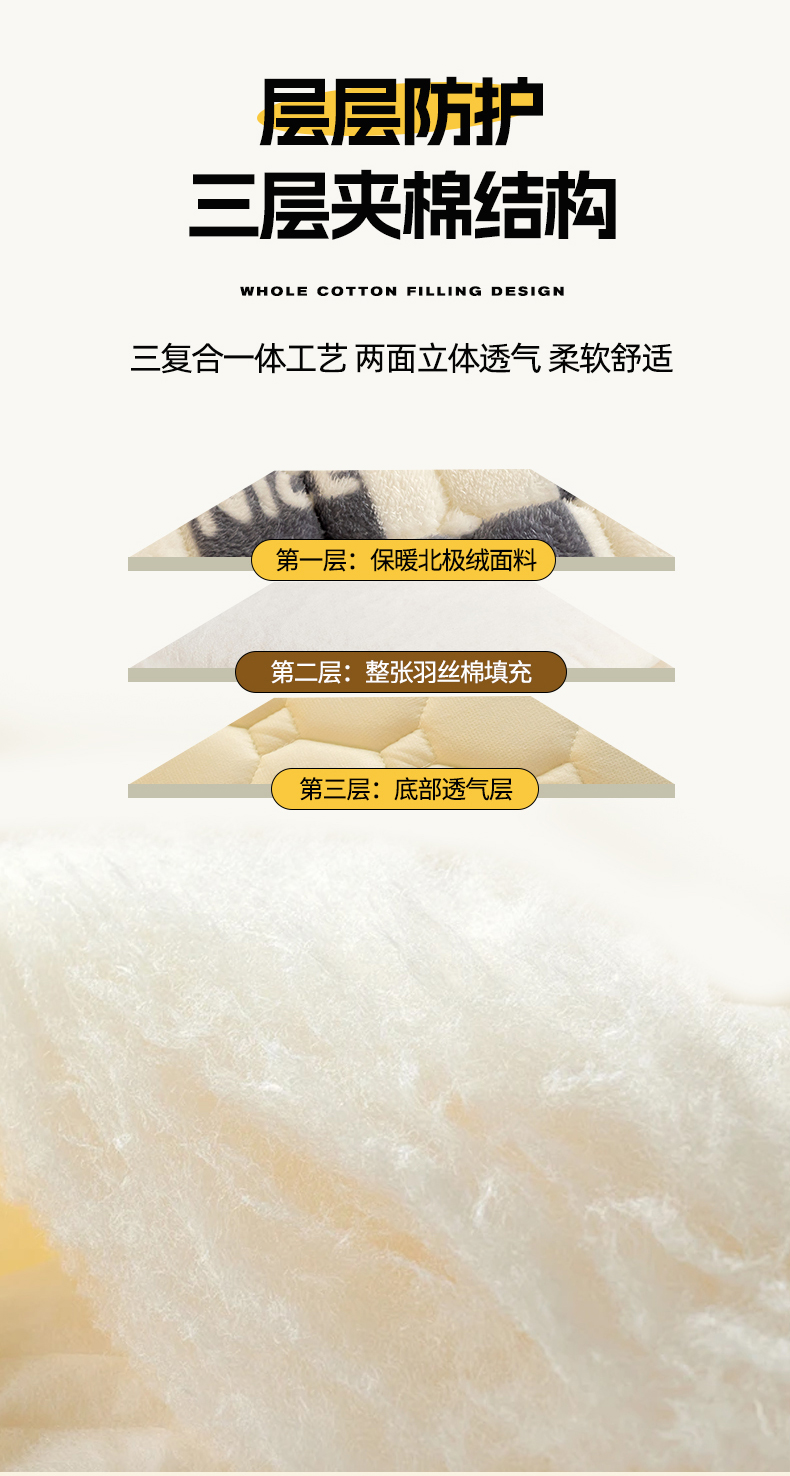 花言狐语 2025新款北极绒保暖夹棉加厚床褥-大床 蓝大格