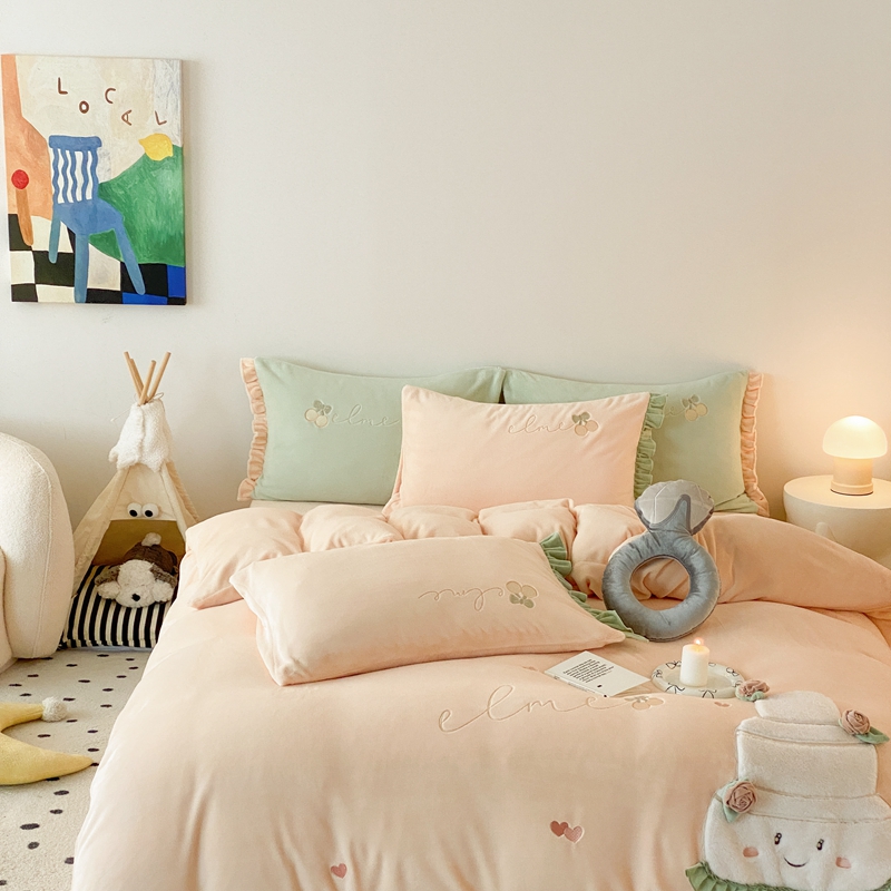(总)朗莎家纺 2019新款羊羔绒贴布绣四件套,彩虹精灵,菠萝玉色,草莓奶白,独角兽抹茶绿,好色龙银灰,荷包蛋姜黄,荷包蛋抹茶绿,柠檬抹茶绿,柠檬墨绿,牛油果抹茶绿,圣诞鹿豆沙,小鸡藏青,小鸡午夜蓝,小鸡银灰