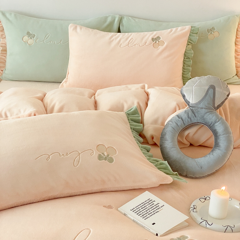 朗莎家纺 2019新款羊羔绒贴布绣四件套 菠萝玉色,菠萝玉色