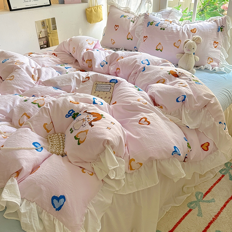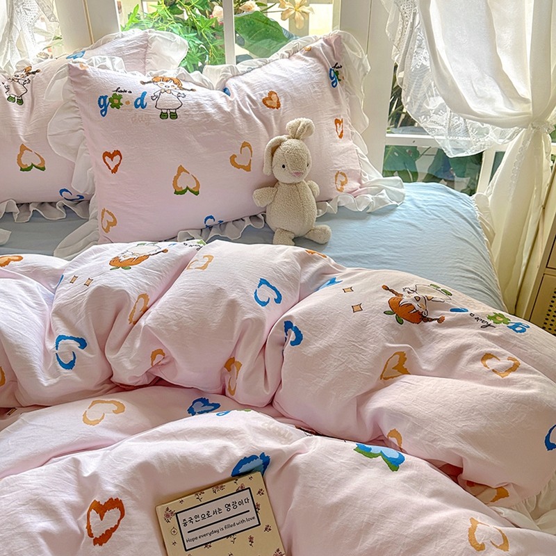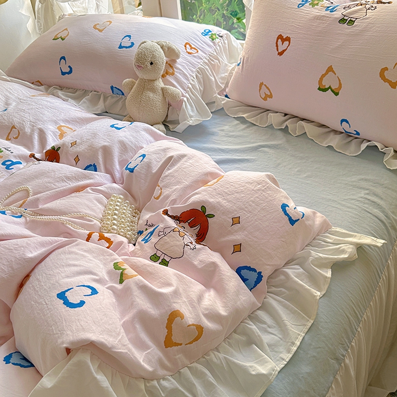 当前位置: 91家纺网 > 商品网购 > 床品套件 > 四件套 > 水洗棉四件套 > 家贝爱 2024新款南法风花边水洗棉四件套 南法风-桃子爱心
