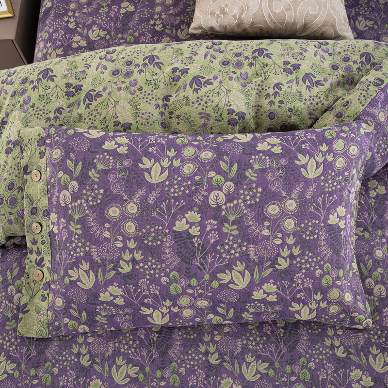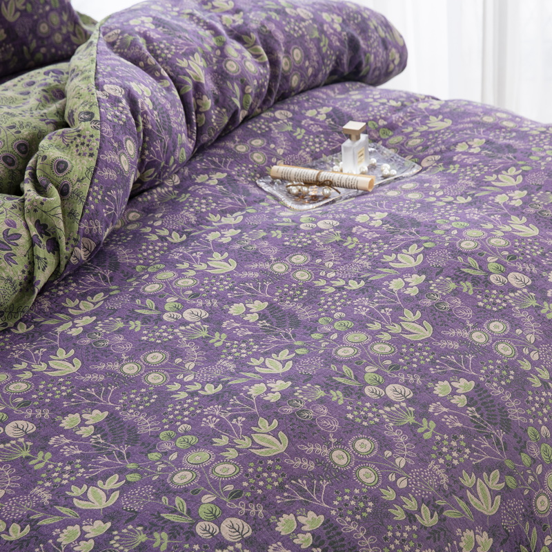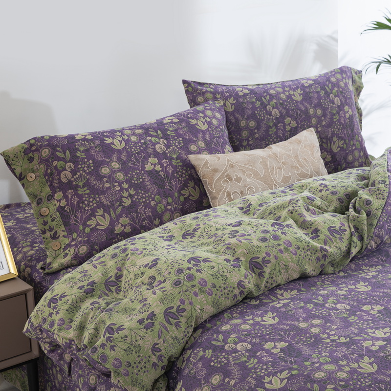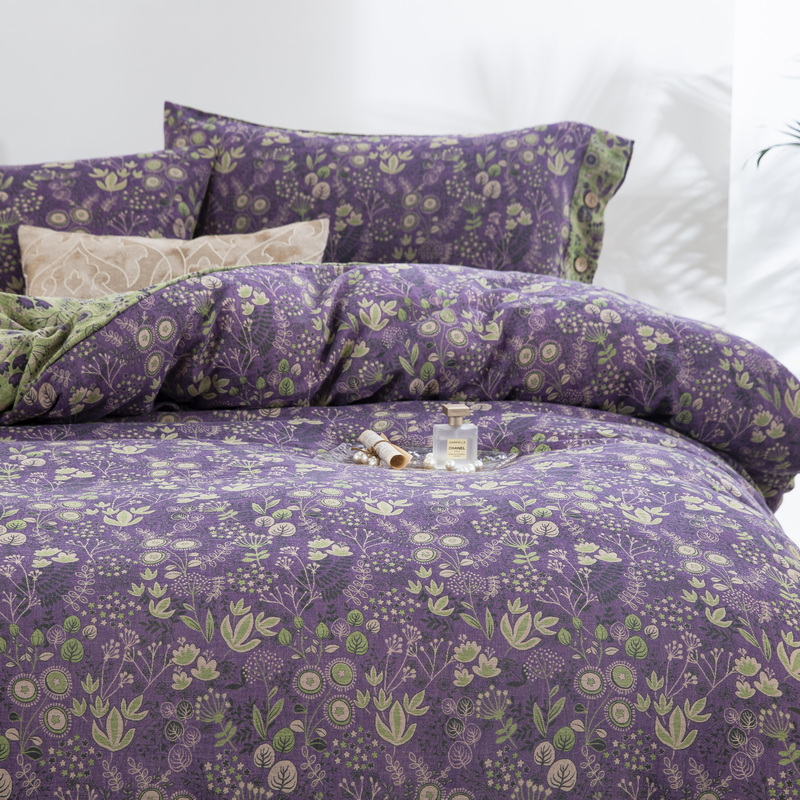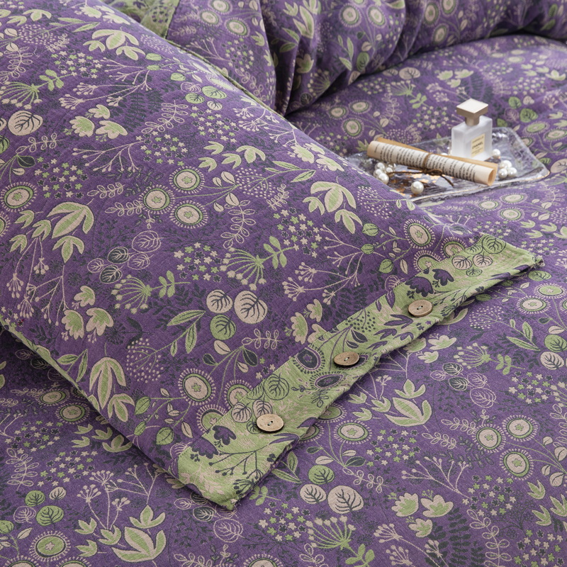 商品名称:鲁爱 2025新款全棉色织双层纱纽扣款四件套 普罗旺斯-紫