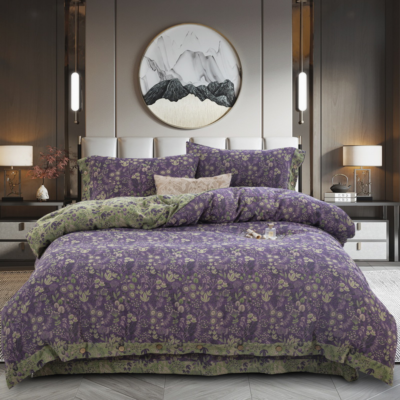 鲁爱 2025新款全棉色织双层纱纽扣款四件套 普罗旺斯-紫
