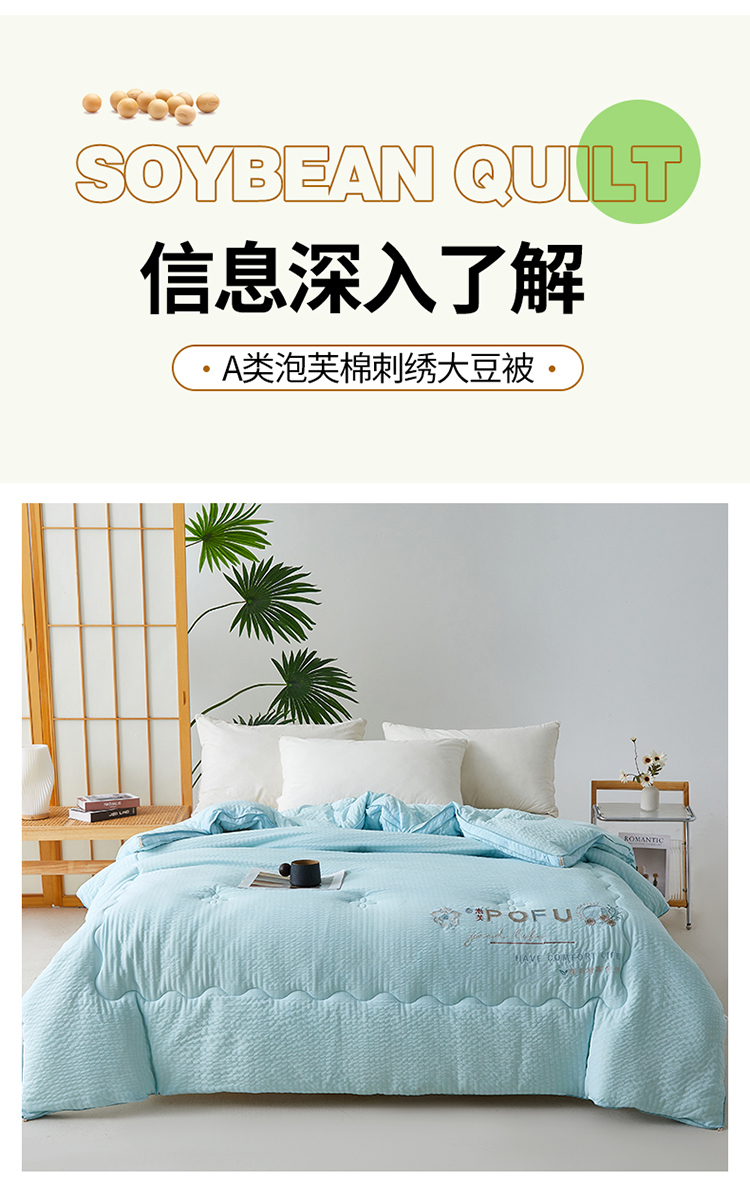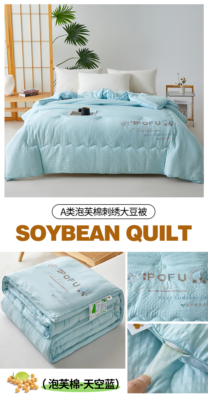 • 91家纺网 家纺一手货源 找家纺 买家秀 爆款花色不断货)A类母婴级泡芙刺绣大豆被子春秋被秋冬被大豆纤维被子被芯空调被水洗棉大豆被子纯 泡芙棉-天空蓝