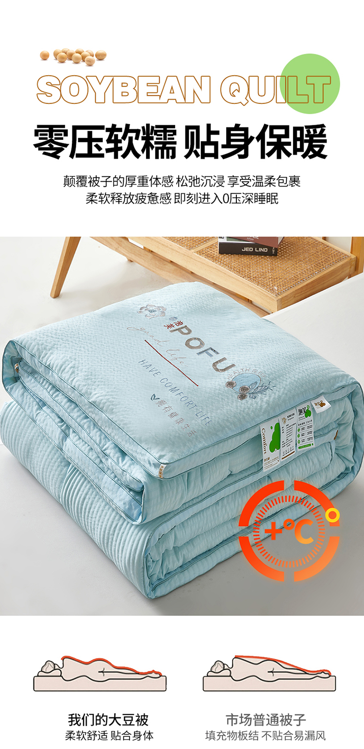 买家秀 爆款花色不断货)A类母婴级泡芙刺绣大豆被子春秋被秋冬被大豆纤维被子被芯空调被水洗棉大豆被子纯 泡芙棉-天空蓝