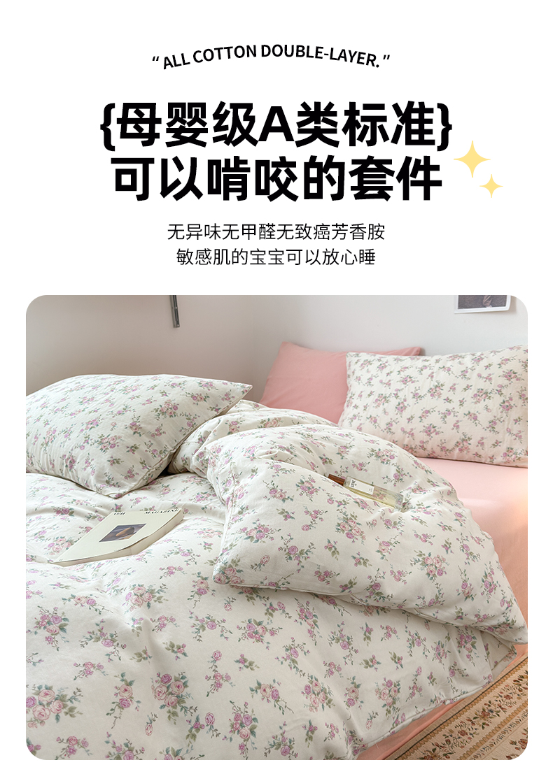 当前位置: 91家纺网 > 商品网购 > 床品套件 > 四件套 > 全棉普通四件套 > (优质买家秀 热卖不断货)A类母婴级卡通花卉儿童100纯棉全棉四件套全棉纯棉全棉四件套纯棉全棉双层纱 清然