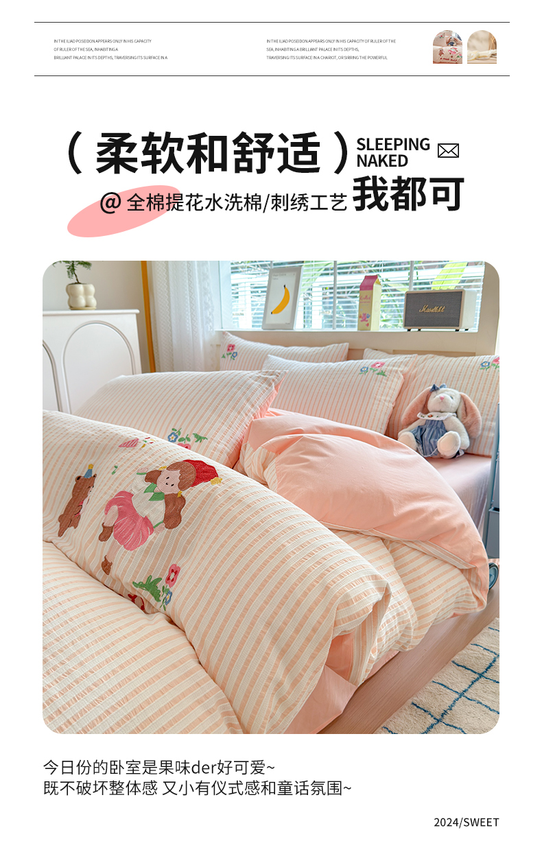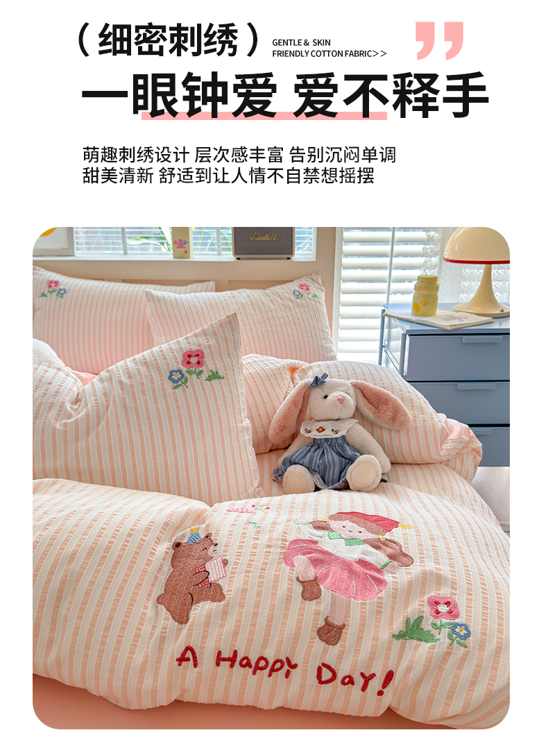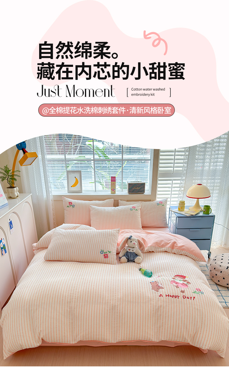 当前位置: 91家纺网 > 商品网购 > 床品套件 > 四件套 > 全棉普通四件套 > (买家秀 热款花型 不断货)母婴级A类ins风水洗棉四件套水洗棉毛巾绣四件套水洗棉床笠四件套提花绣花 小红帽