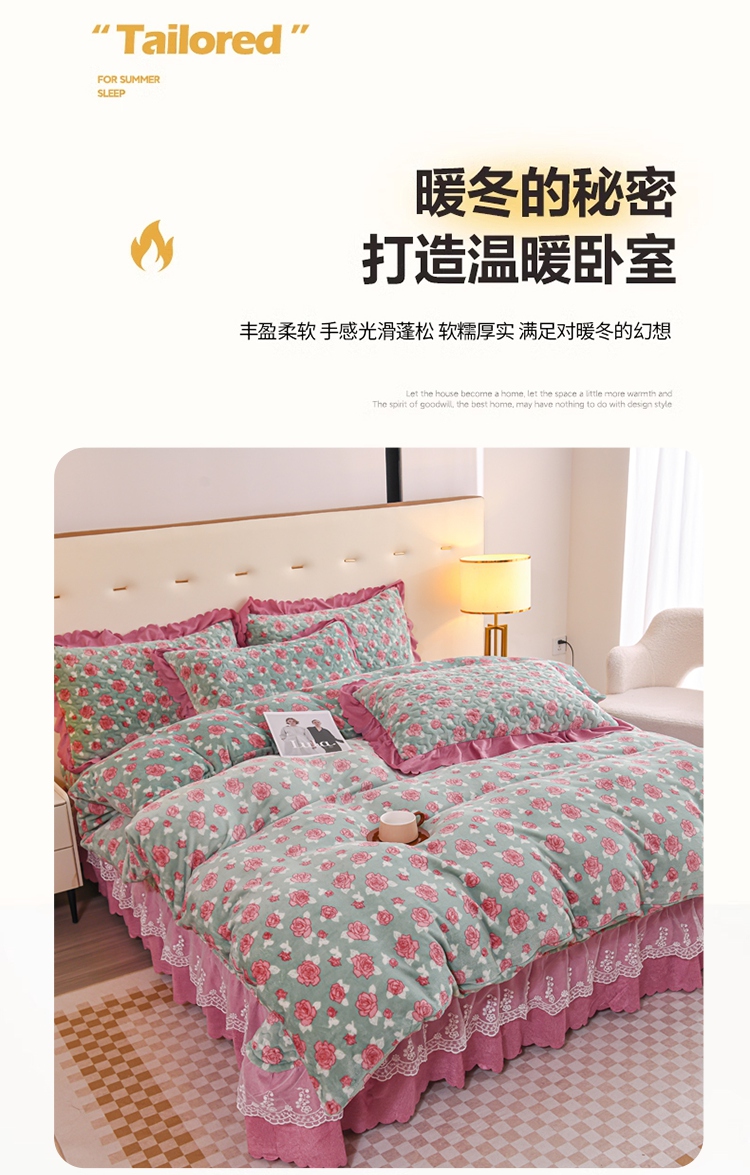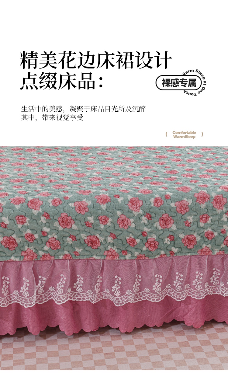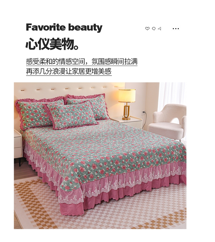当前位置: 91家纺网 > 商品网购 > 床品套件 > 四件套 > 牛奶绒四件套 > (买家秀 爆款不断货)A类母婴级双层蕾丝花边床裙床盖三件套牛奶绒床盖三件套萱花绒床护垫牛奶绒床褥卡通 花边-粉玫瑰