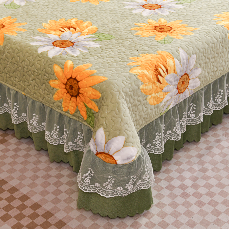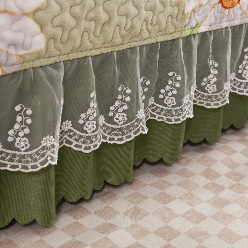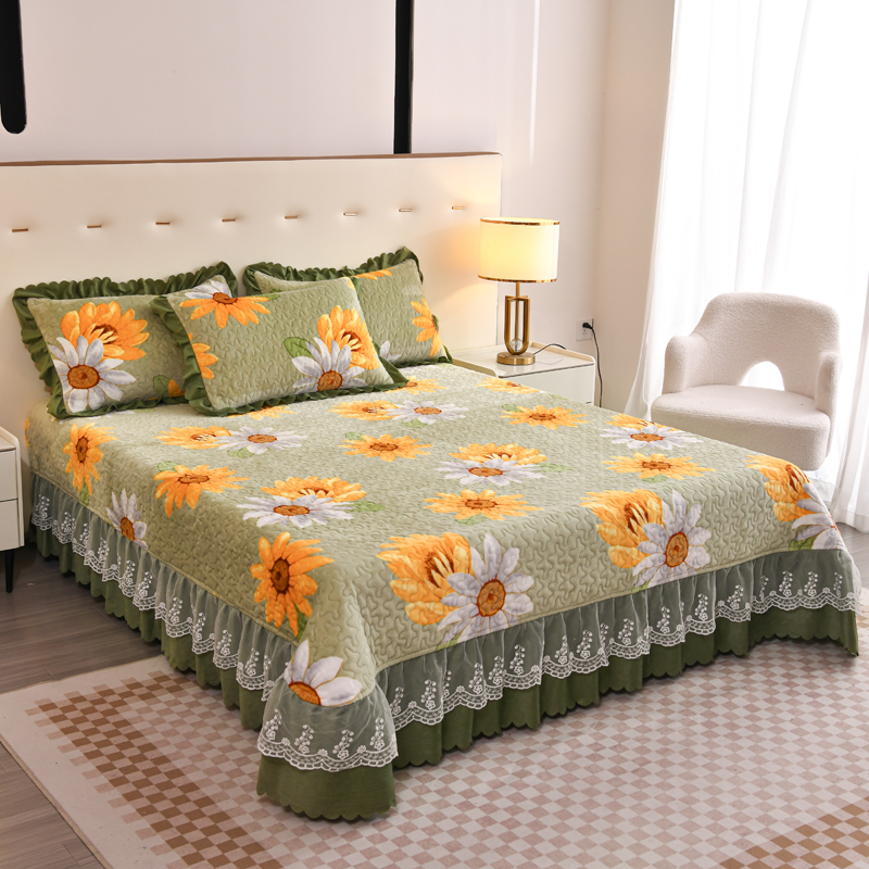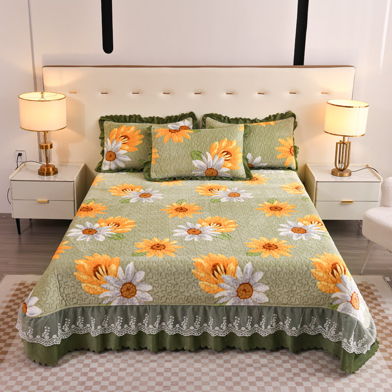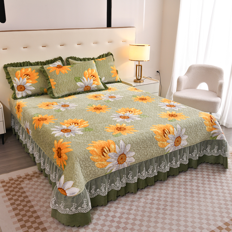 • 91家纺网 家纺一手货源 找家纺 (买家秀爆款不断货)A类母婴级牛奶绒床盖三件套雪花绒床盖三件套雪花绒床护垫子牛奶绒床褥子卡通床单床裙 花边-向日葵