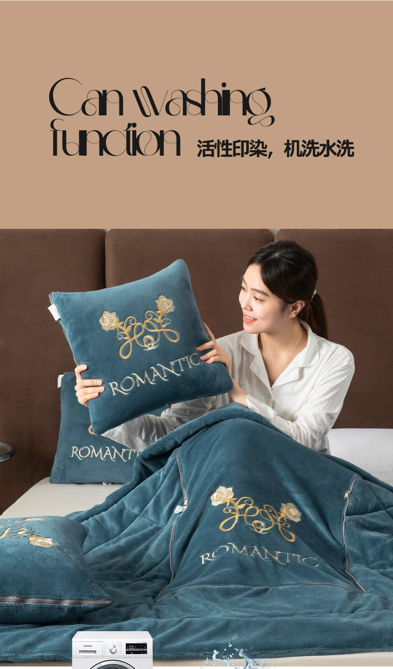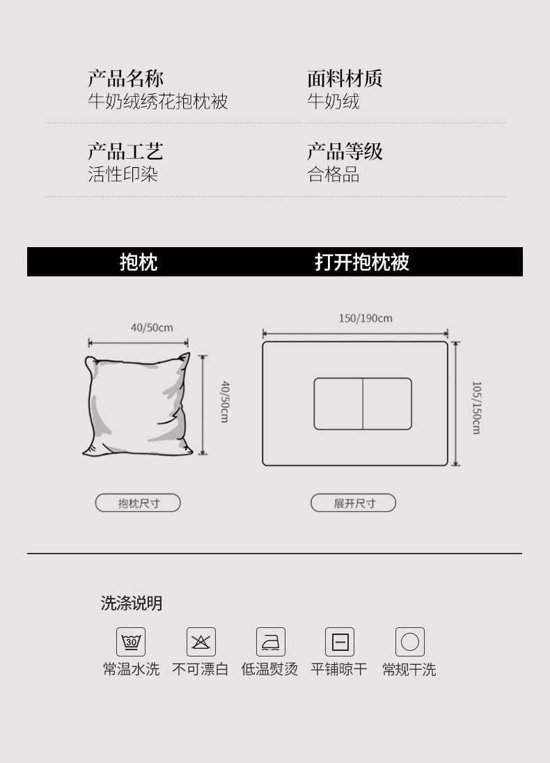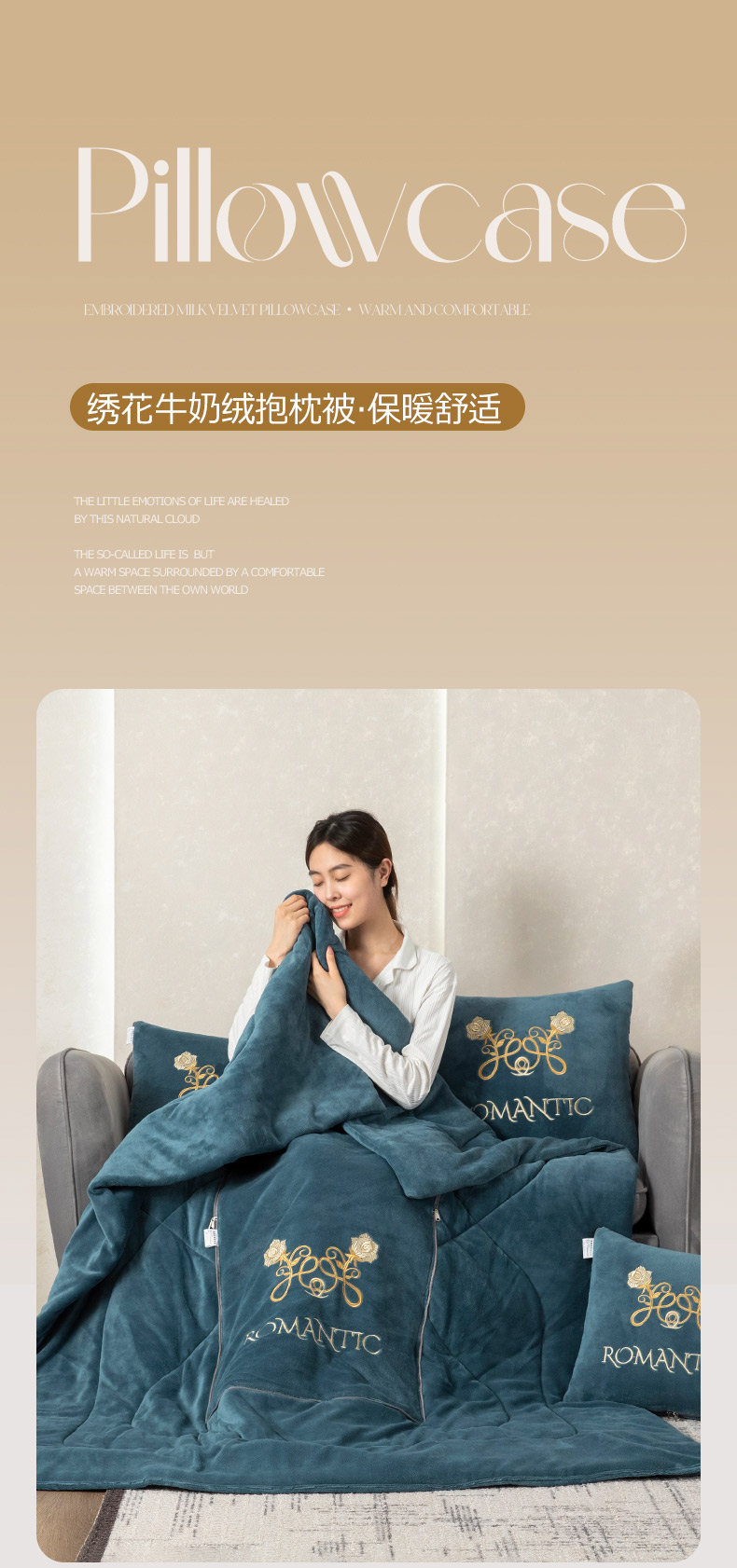 (总)雷人家纺 2023新款倾城花恋水晶绒刺绣多功能抱枕被,倾城花恋-深灰,倾城花恋-浅灰,倾城花恋-天蓝,倾城花恋-柚黄