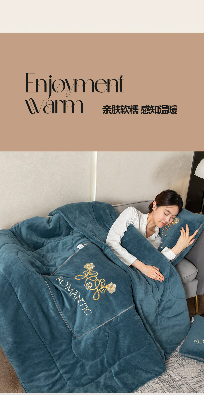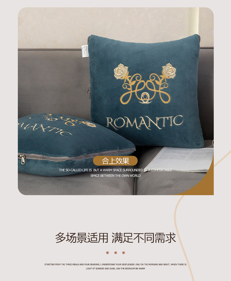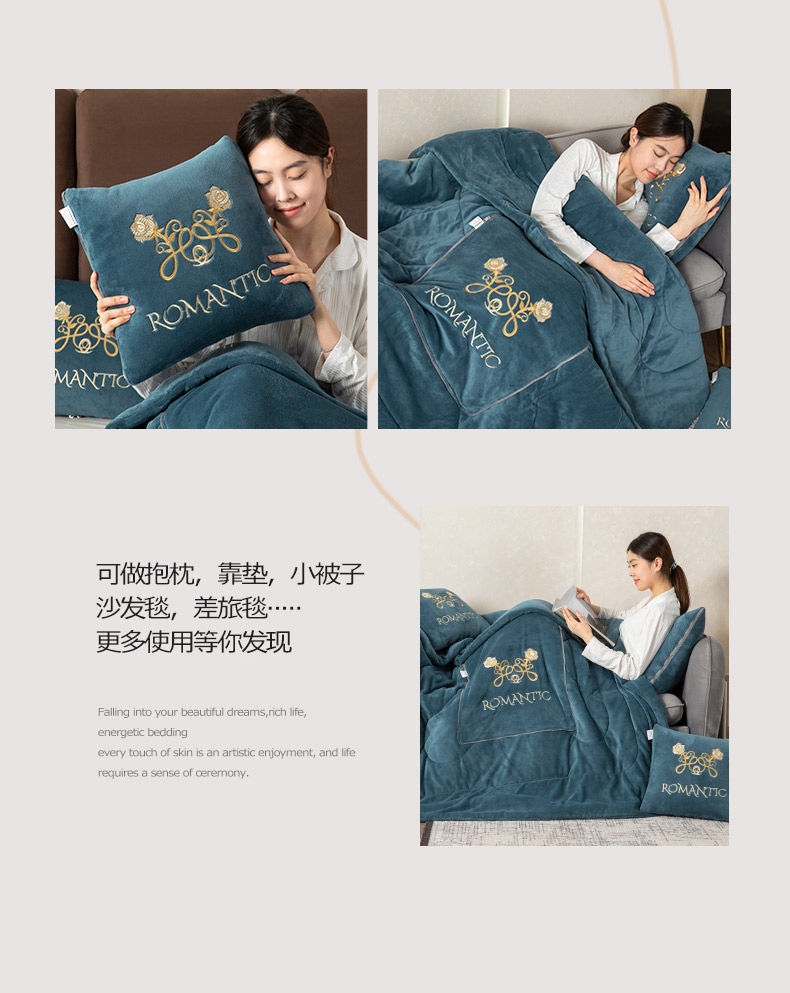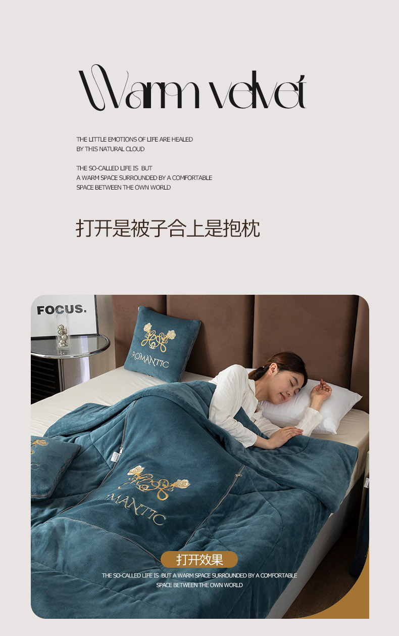 (总)雷人家纺 2023新款倾城花恋水晶绒刺绣多功能抱枕被,倾城花恋-深灰,倾城花恋-浅灰,倾城花恋-天蓝,倾城花恋-柚黄