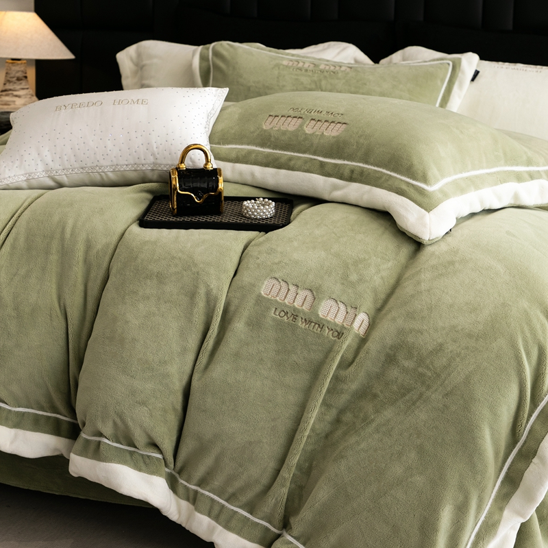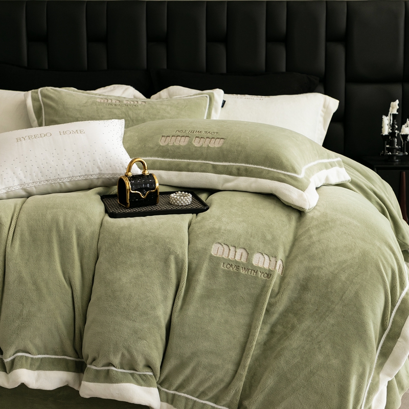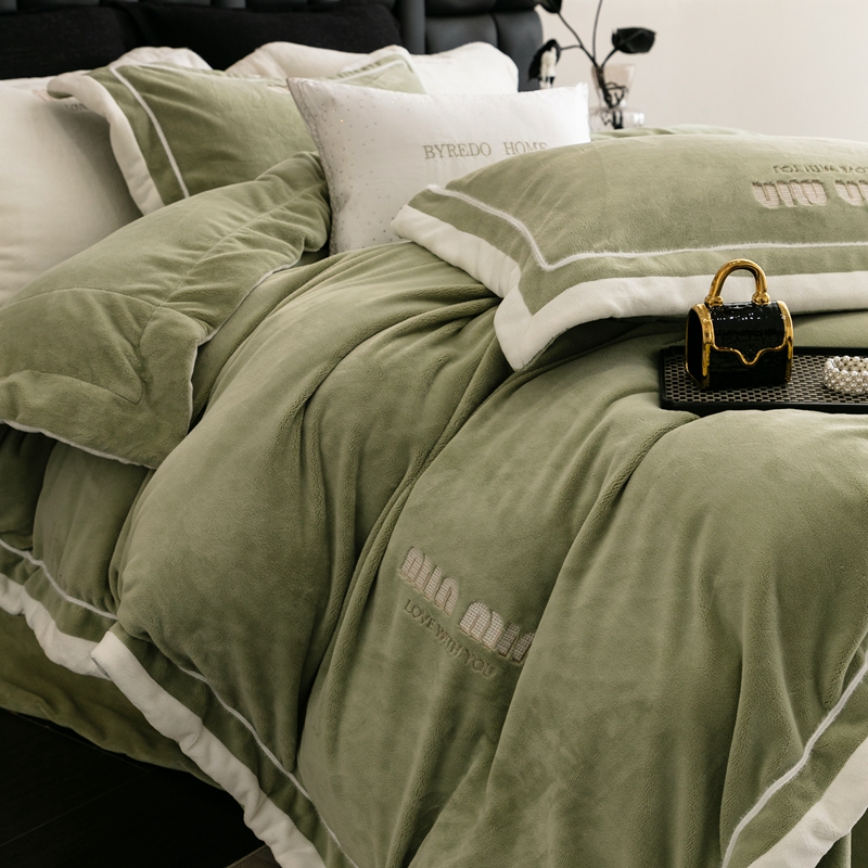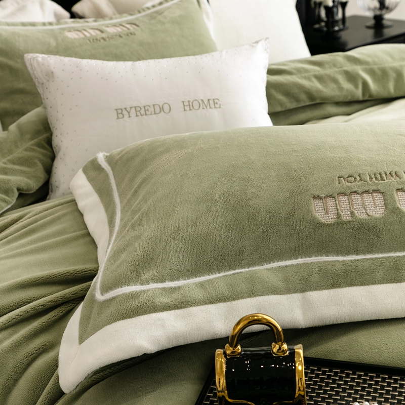 商品名称:新款350克全消光煦暖绒四件套-瑞丽 绒瑞丽-灰湖绿