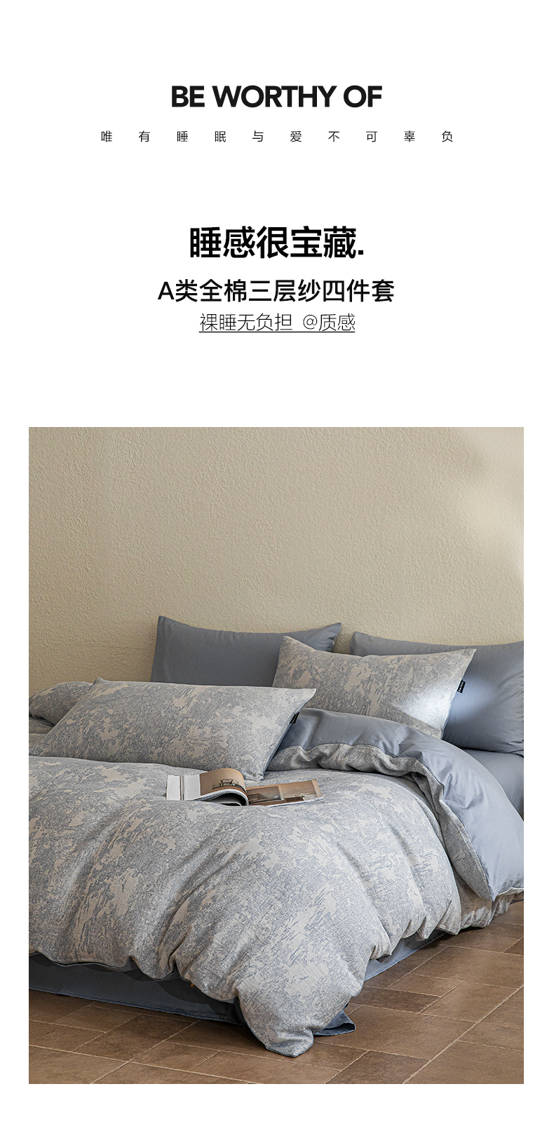 (总)卧趣家纺 2025新款秋冬新款纯棉A类三层纱加厚磨毛大提花四件套,摩登森林-兰,川野-兰,川野-米,米斯-兰,米斯-米,沐云里-灰,沐云里-咖,伊望-兰