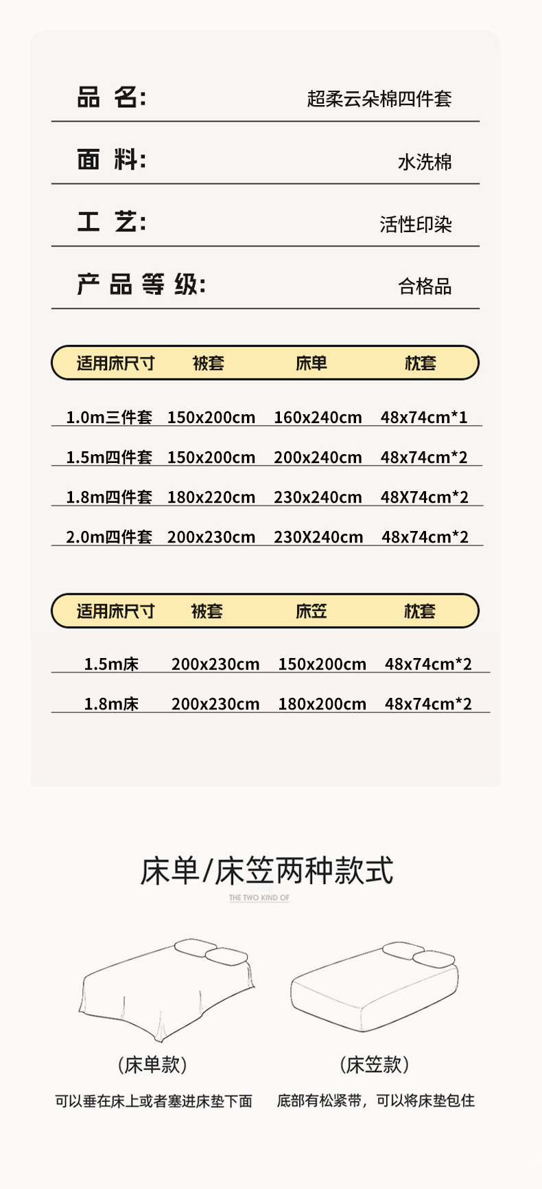 1.5m床笠款四件套-被套:200cm*230cm | ¥70.00 |