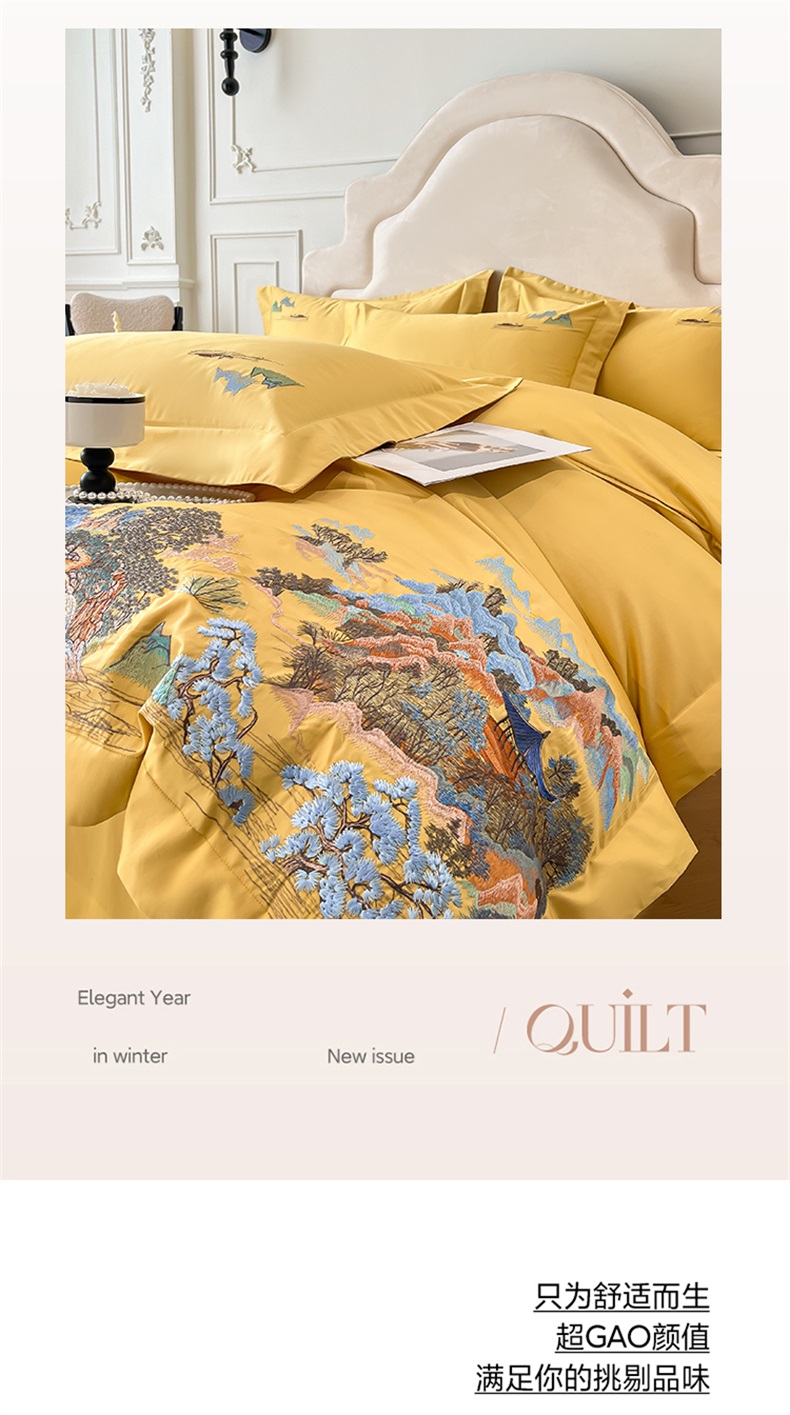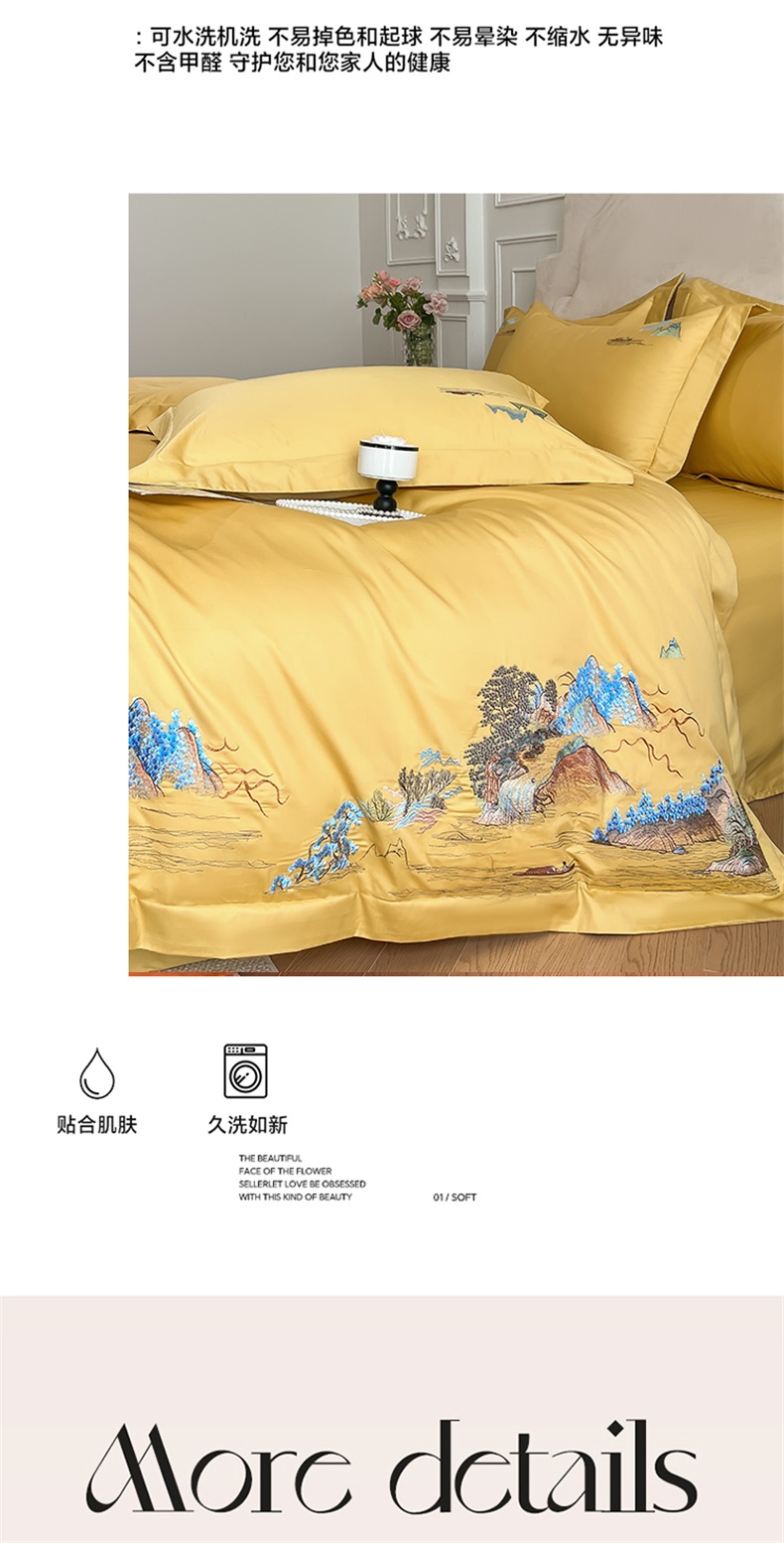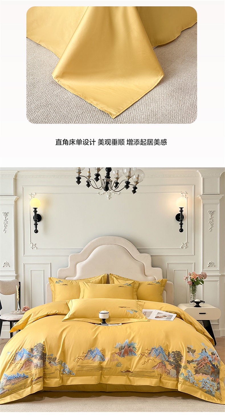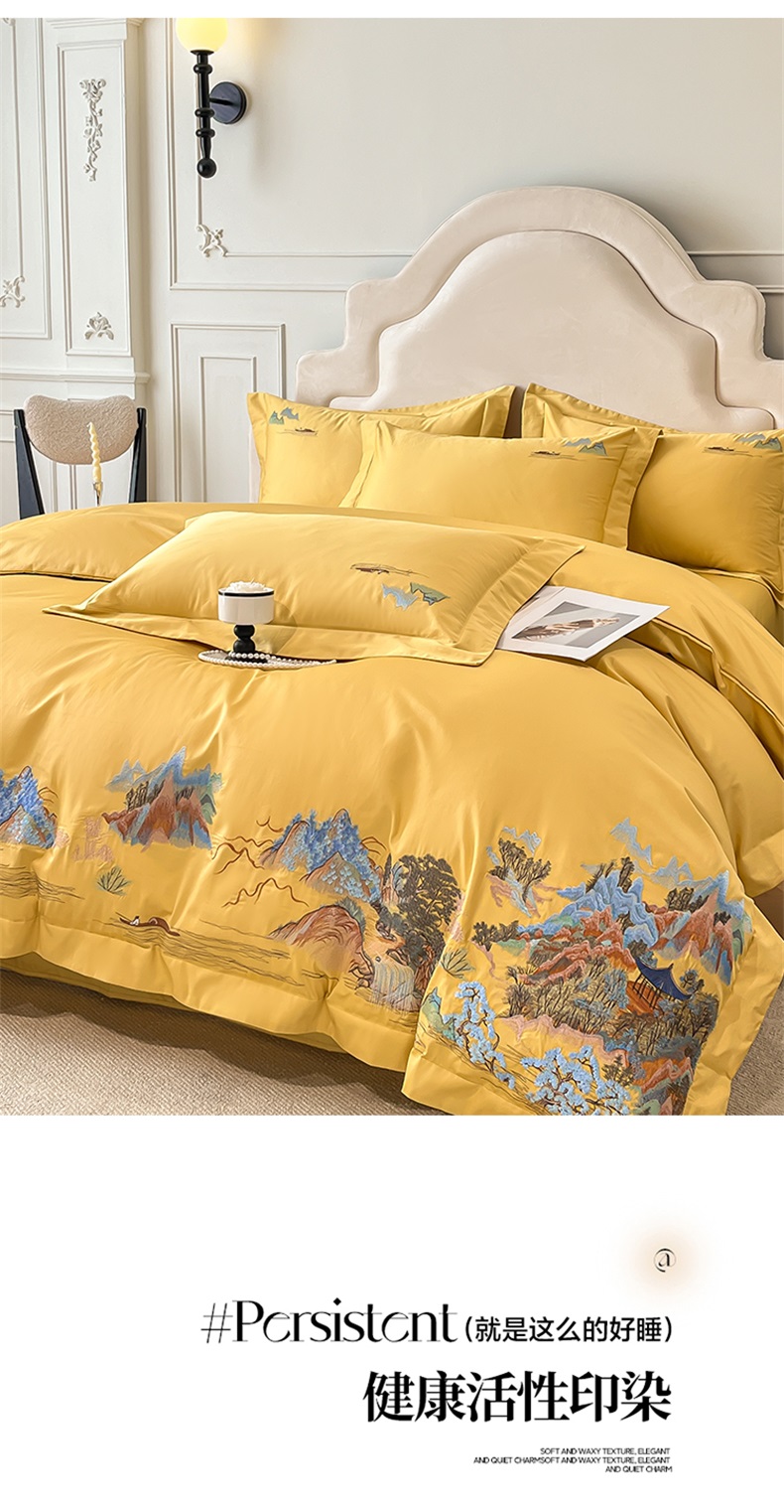 商品名称:帝王家纺 2025新款亲肤棉磨毛重工绣花四件套-锦绣山河 锦绣山河-琉璃黄