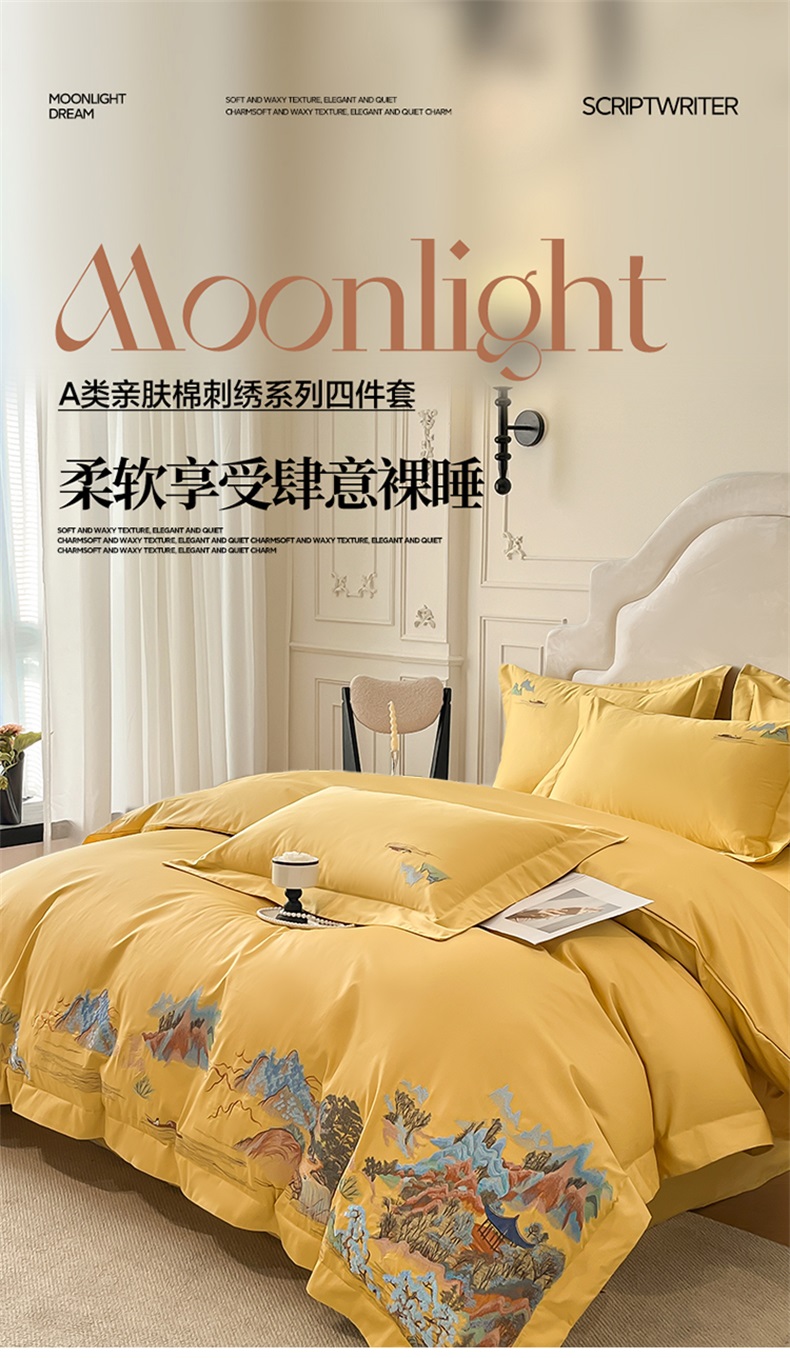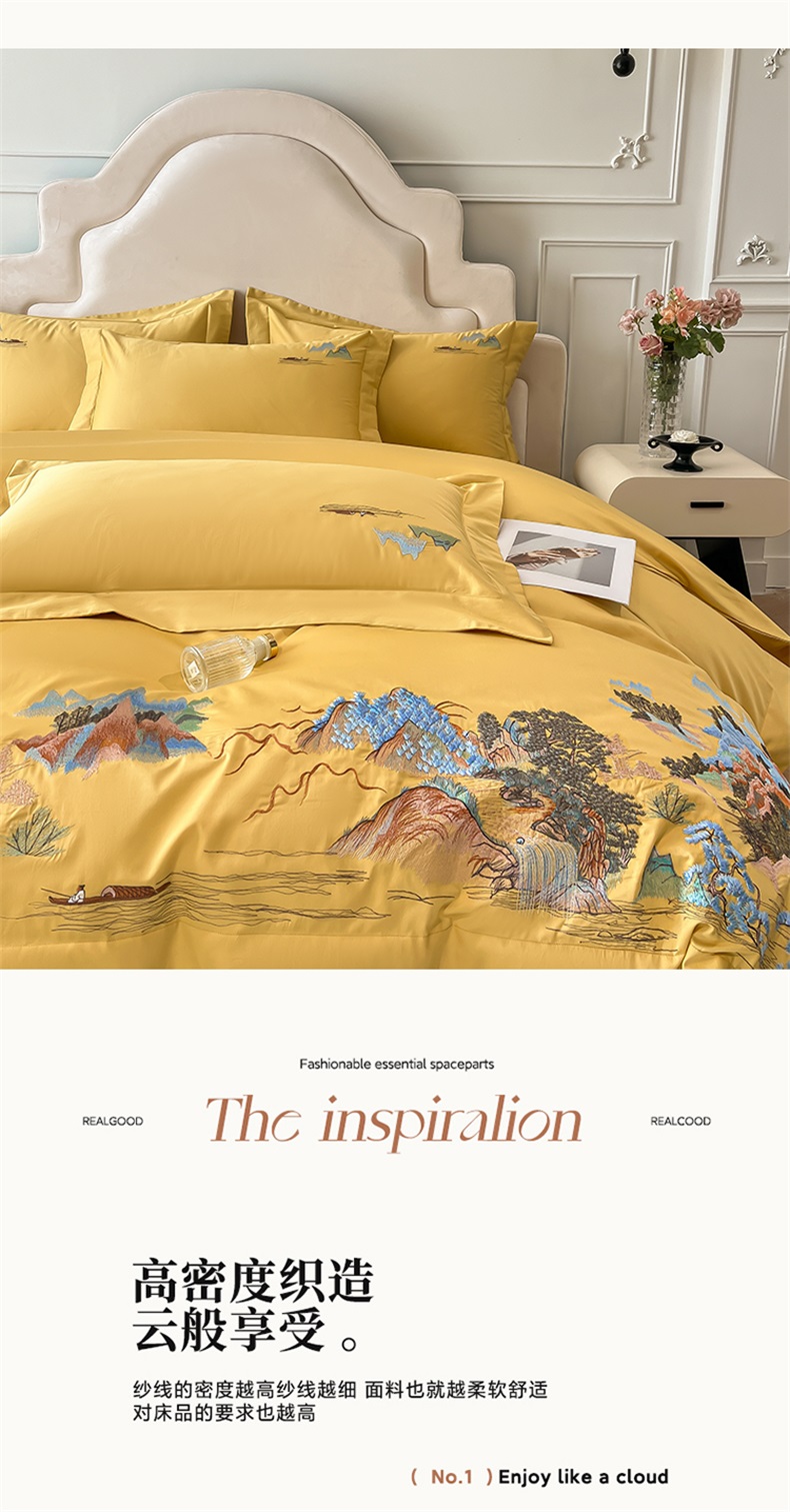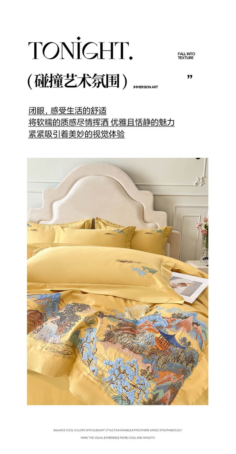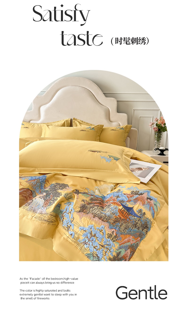 商品名称:帝王家纺 2025新款亲肤棉磨毛重工绣花四件套-锦绣山河 锦绣山河-琉璃黄