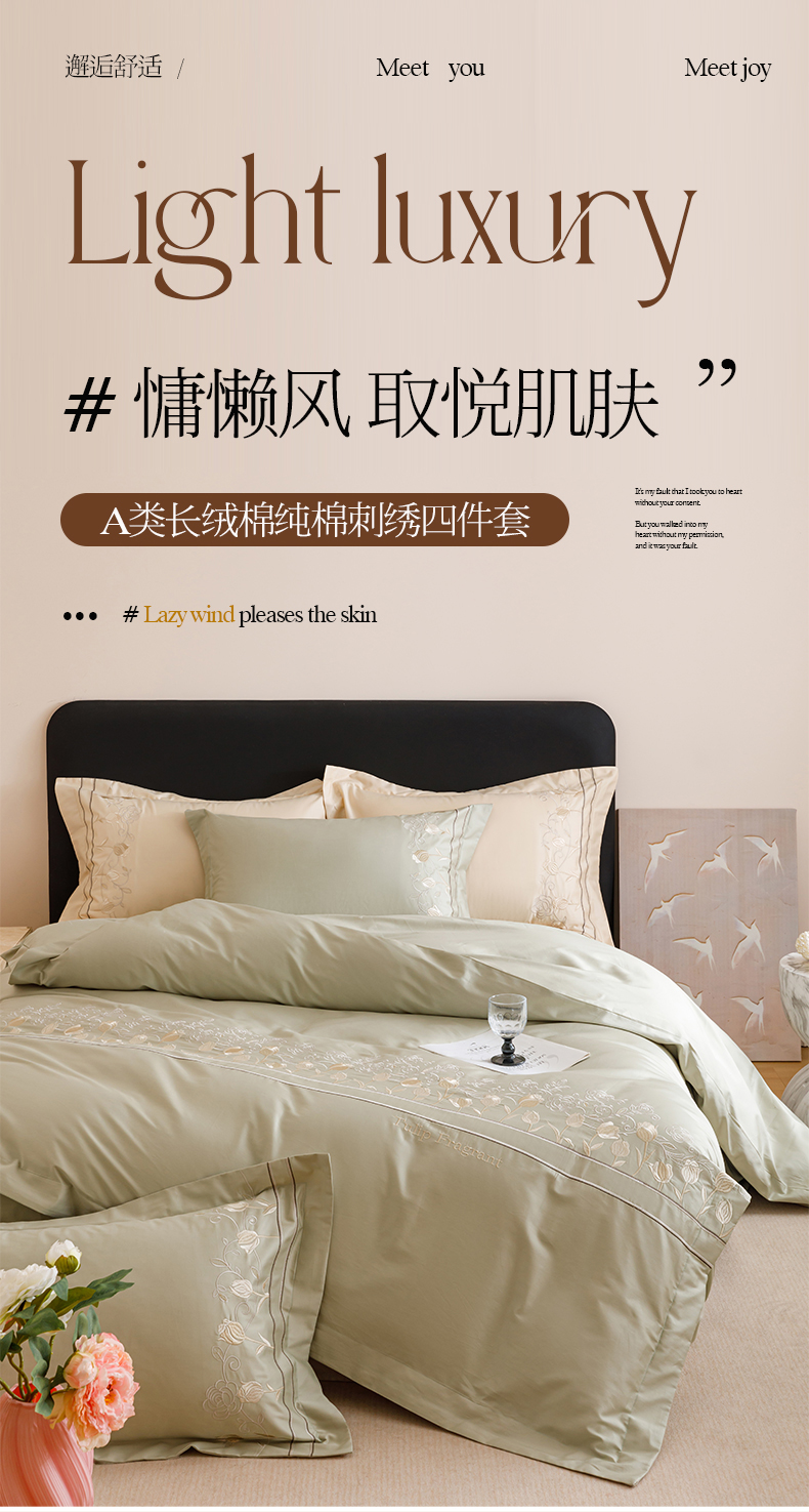 (总)艾莱家纺 2025新款A类100支长绒棉纯棉四件套-郁金香,郁金香-薄荷绿,郁金香-浅米驼,郁金香-珍珠粉