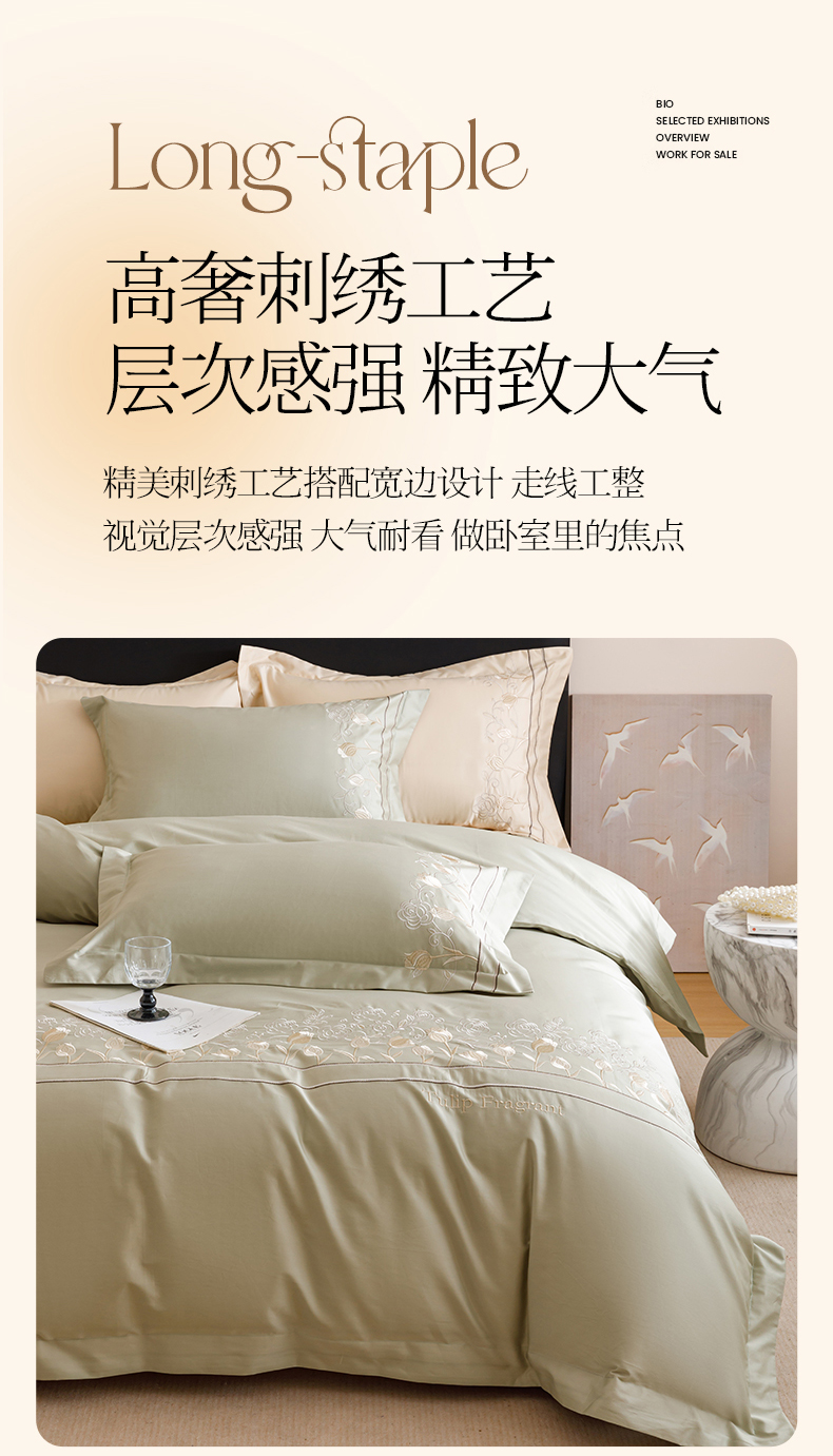 (总)艾莱家纺 2025新款A类精梳纯棉刺绣花四件套-赫柏,赫柏-橙夕,赫柏-花田米,赫柏-浅粉,赫柏-夜绿