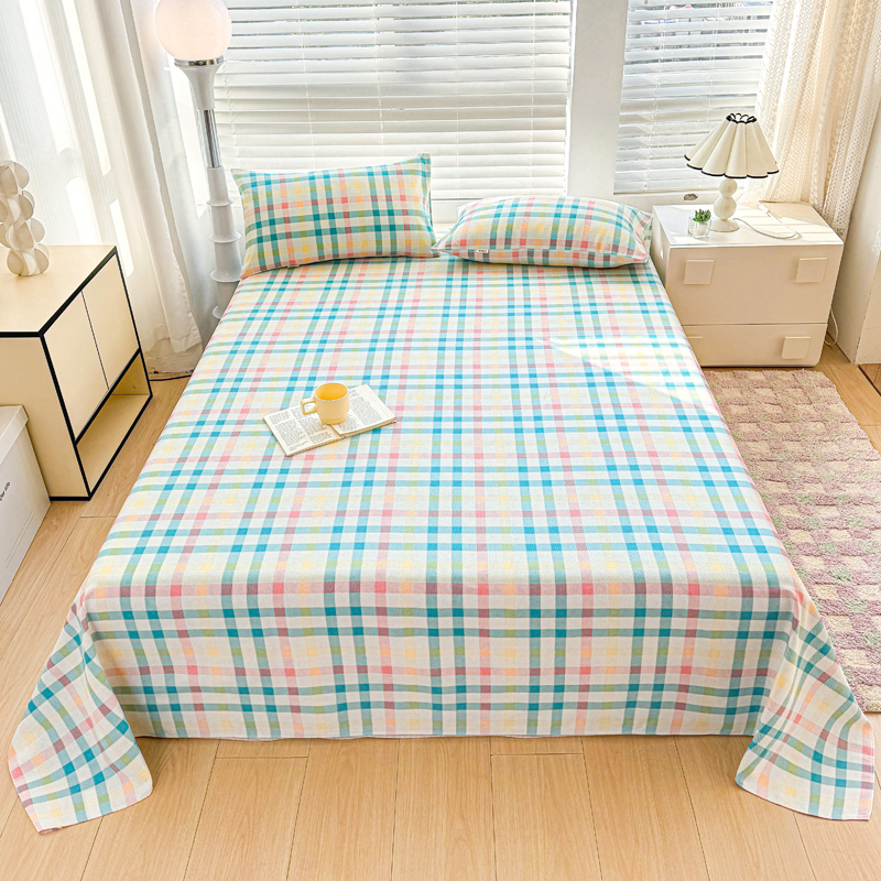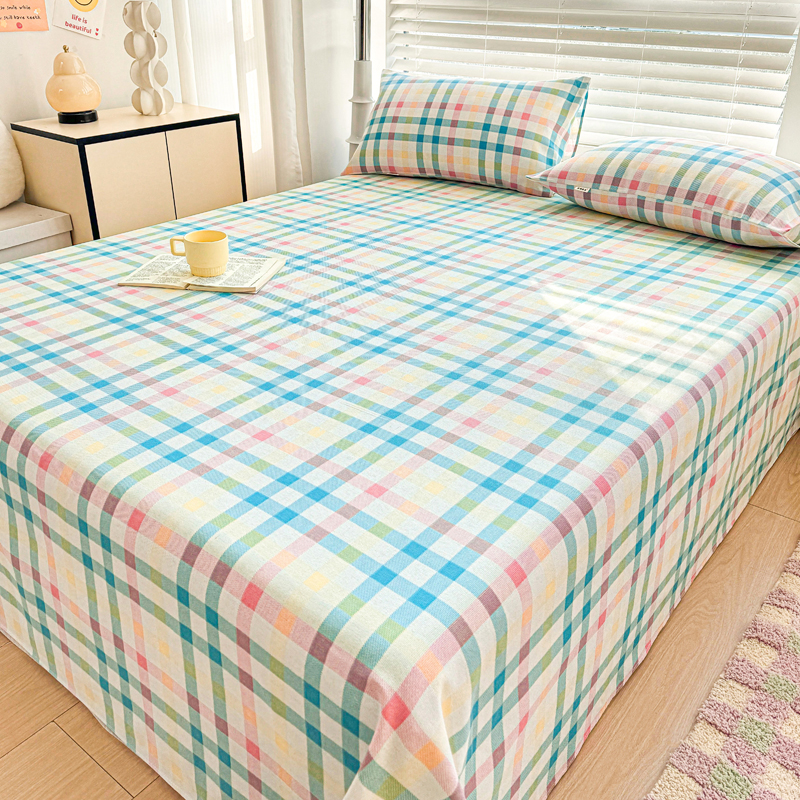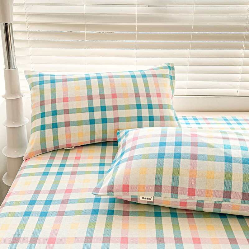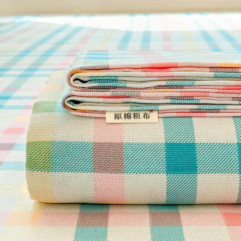 首爱家纺 2025新款印花原棉标老粗布床单老粗布凉席软凉席 冰激凌格